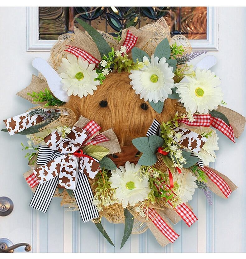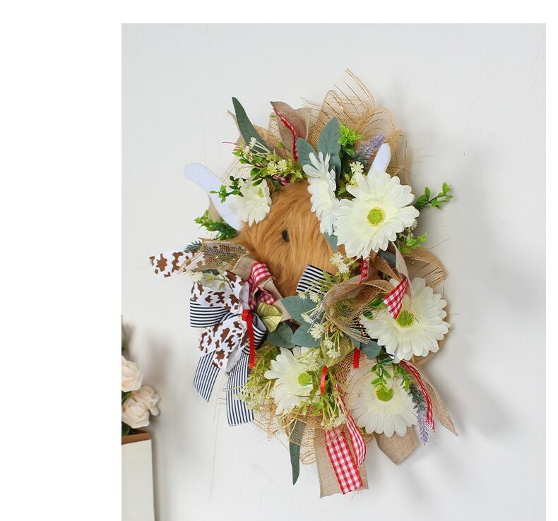 リース ガーデンオーナメント 牛 フェイク グリーン ガーデン ドア お洒落 かわいい 花 フラワー 庭 エレガント 壁掛け ガーデニング 雑貨 ガーデン雑貨 ガーデンインテリア ガーデン インテリア 庭の装飾 お洒落 おしゃれ 8-14