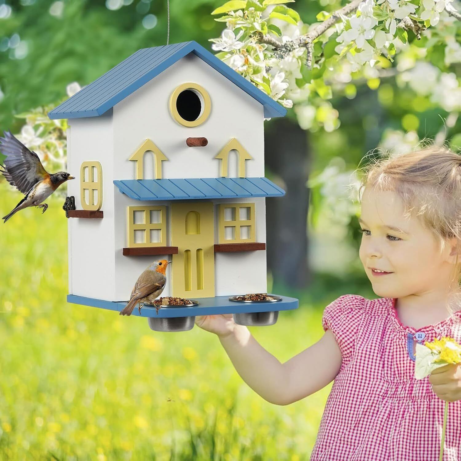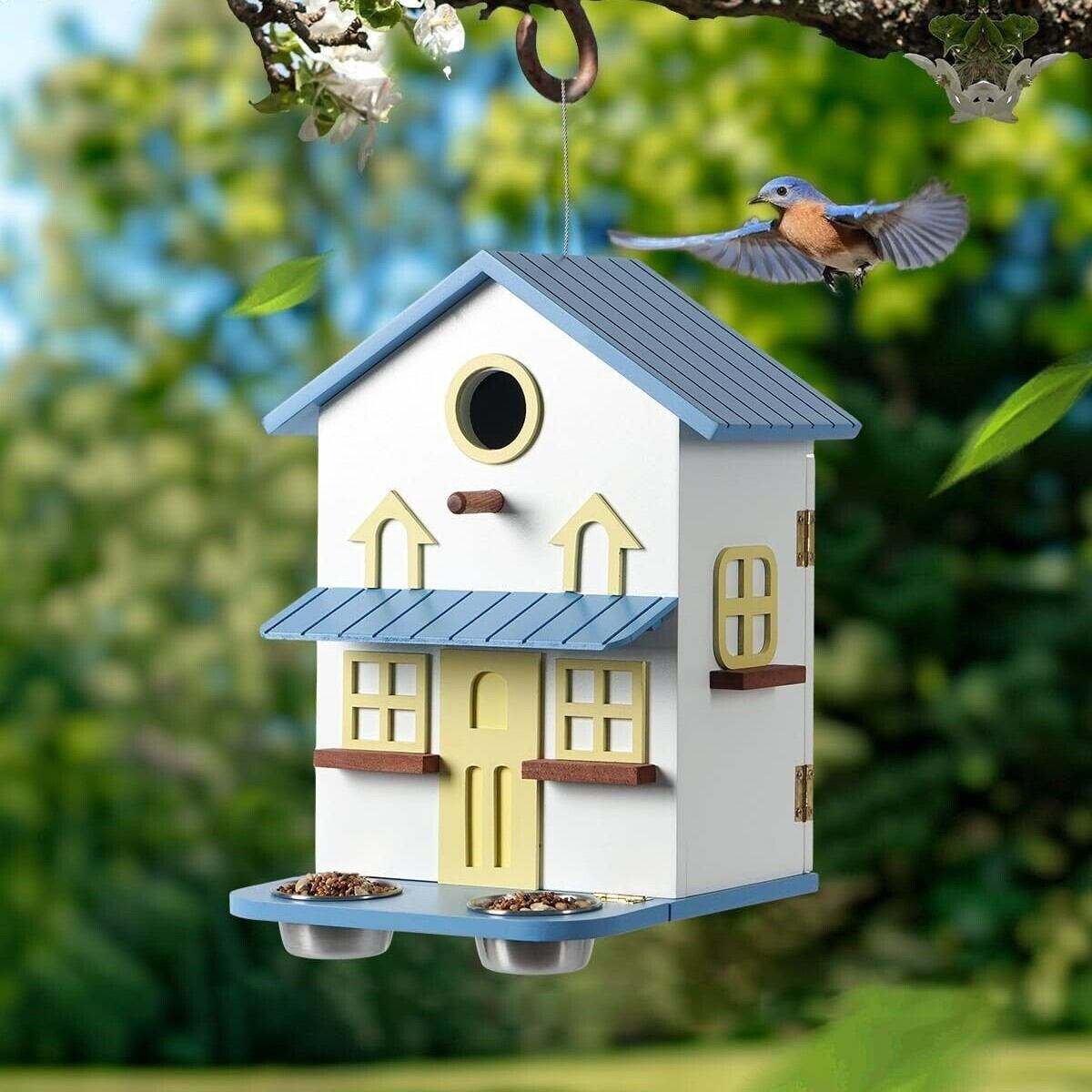 ガーデンオブジェ バードハウス 木製 バードウォッチング 野鳥 庭 木 ブルー ガーデンオーナメント ガーデニング 雑貨 ガーデン雑貨 ガーデンインテリア ガーデン インテリア 庭の装飾 お洒落 おしゃれ 8-14
