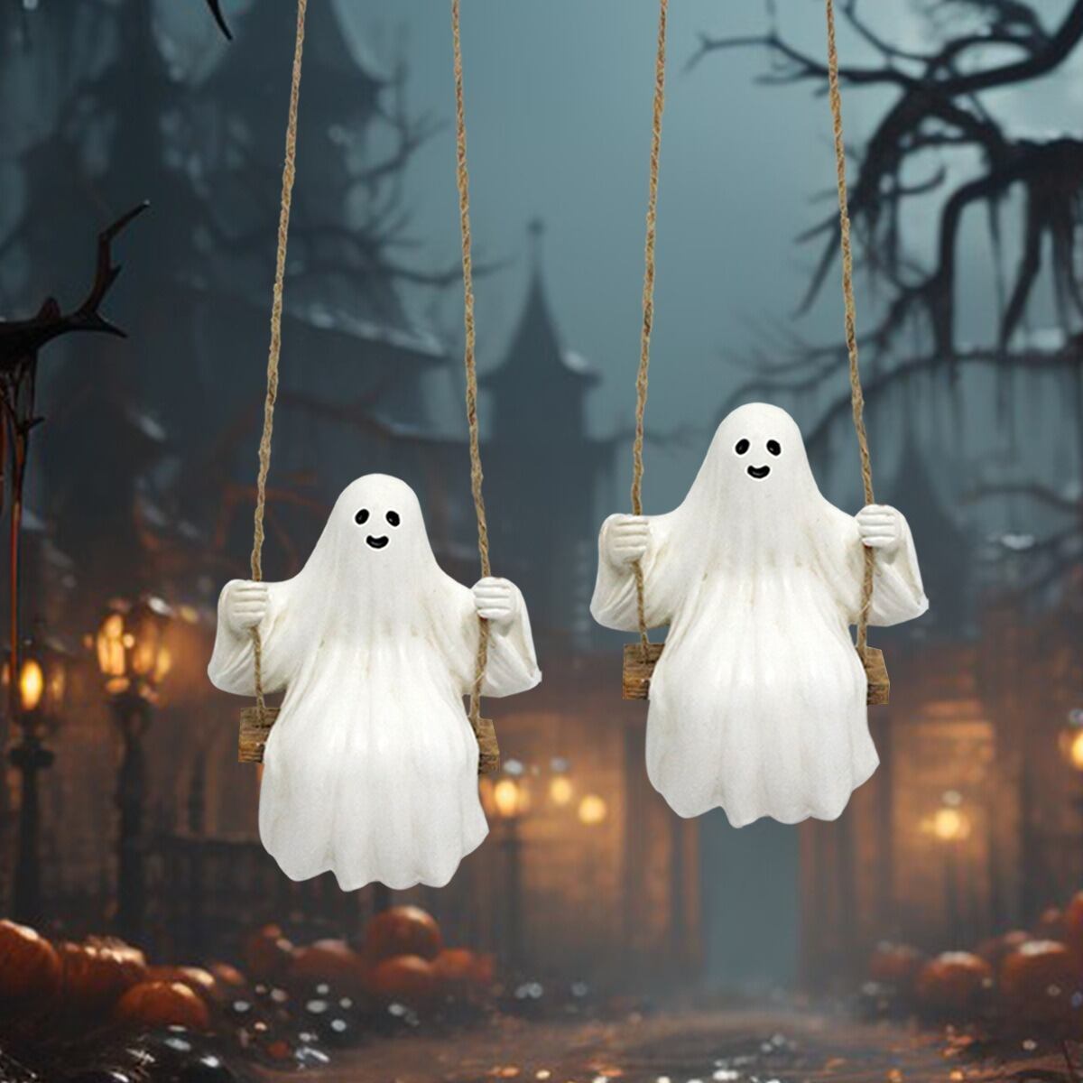ガーデンオブジェ ブランコ オバケ 2個セット 幽霊 かわいい ハロウィン 樹脂 ガーデンオーナメント ガーデニング 雑貨 ガーデン雑貨 ガーデンインテリア ガーデン インテリア 庭の装飾 お洒落 おしゃれ 8-14