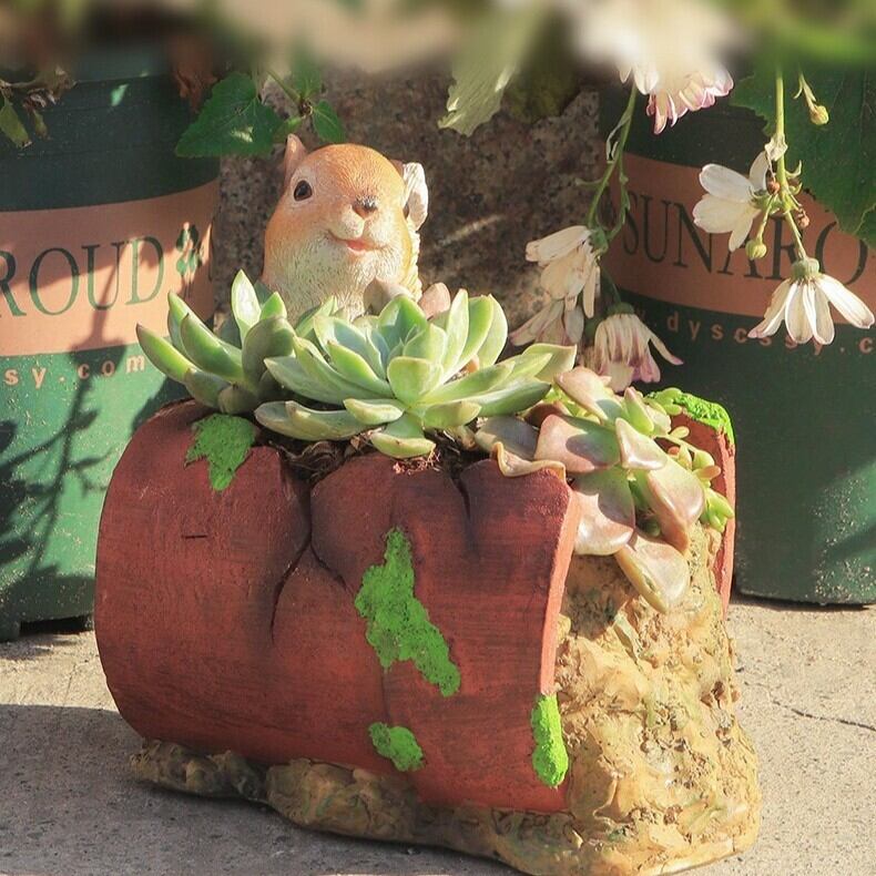 こちらは、可愛いリスのオブジェがポイントのプランターです。樹脂製のこのプランターは、耐久性があり、庭やベランダを華やかに彩ります。リスの愛らしいデザインは、見る人に癒しを与え、空間に可愛らしさをプラスしてくれることでしょう。