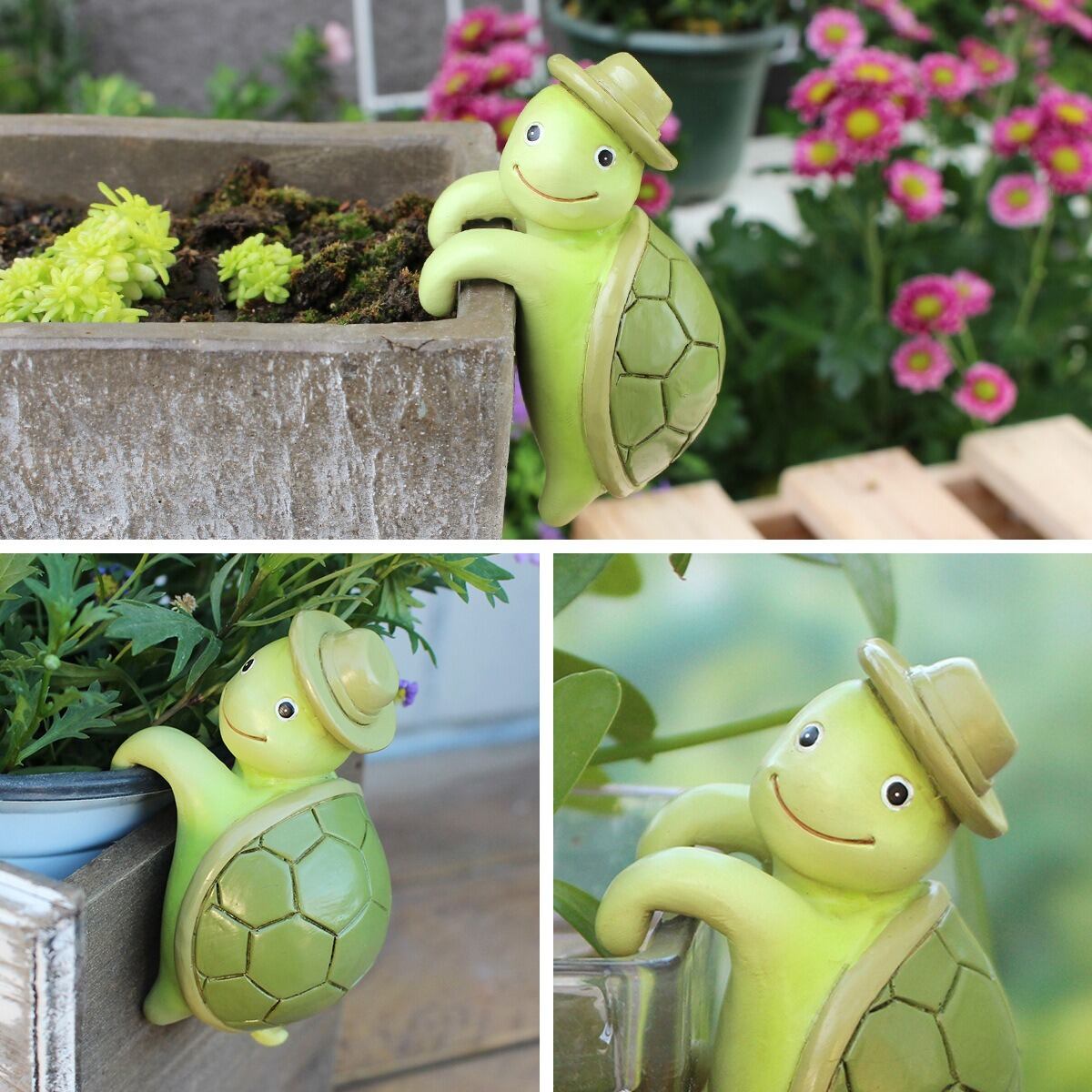また、植木鉢にデコレーションすることで、お花や観葉植物との相性も抜群。カメが微笑むように見えることで、日々の生活にちょっとした幸せをもたらしてくれるかもしれません。お庭やベランダを彩るこのアイテムは、贈り物としても喜ばれることでしょう。