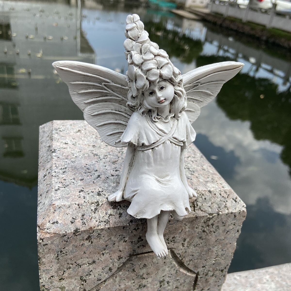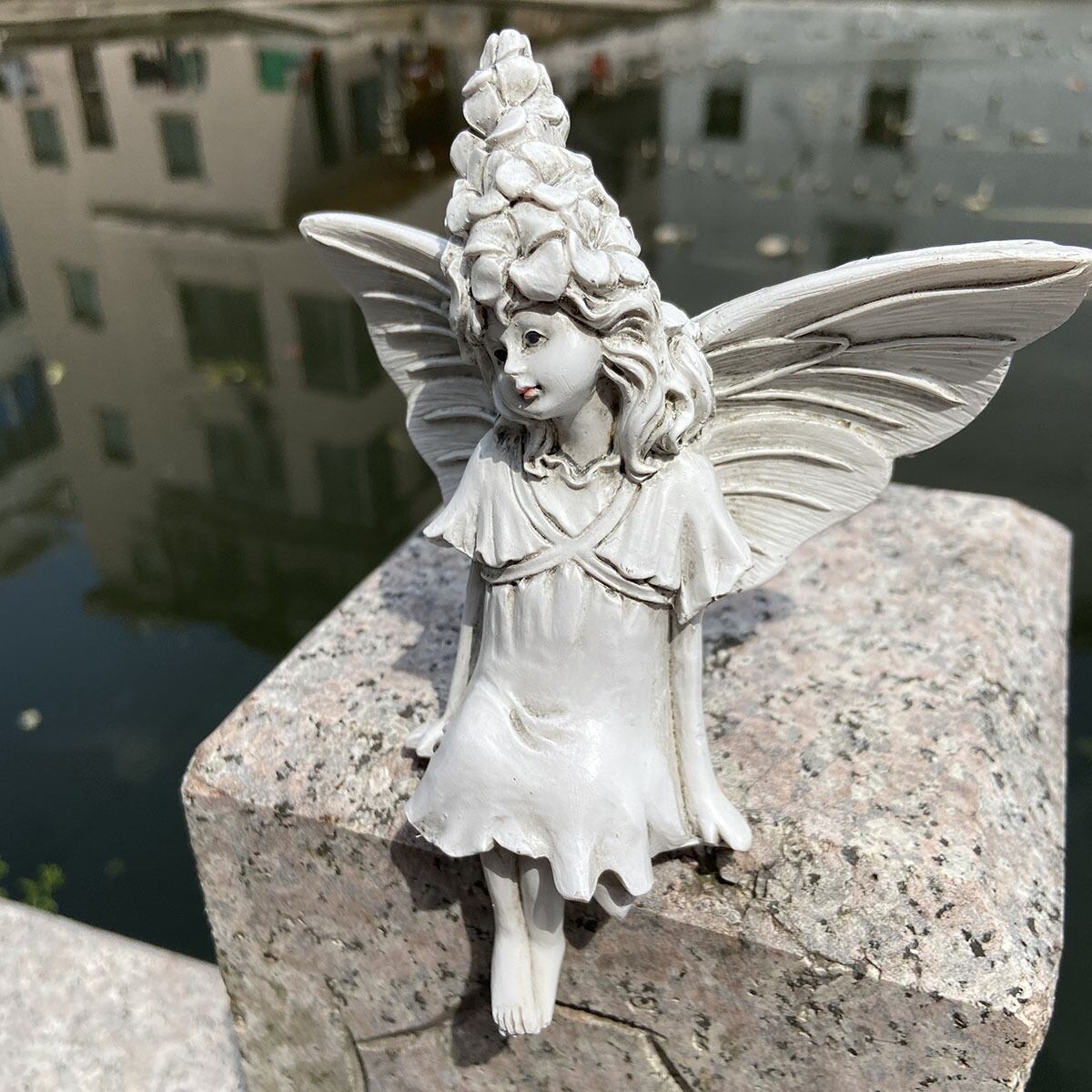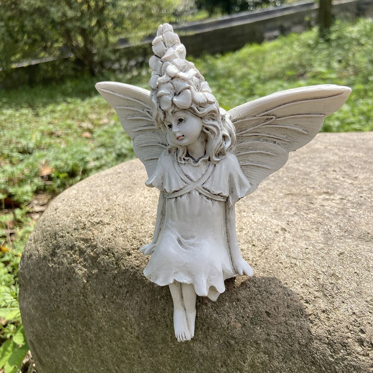 ガーデンオブジェ フェアリー ヴィンテージ調 樹脂 ホワイト 庭 妖精 白 かわいい ガーデニング 雑貨 ガーデン雑貨 ガーデンインテリア ガーデン インテリア 庭の装飾 お洒落 おしゃれ 8-14