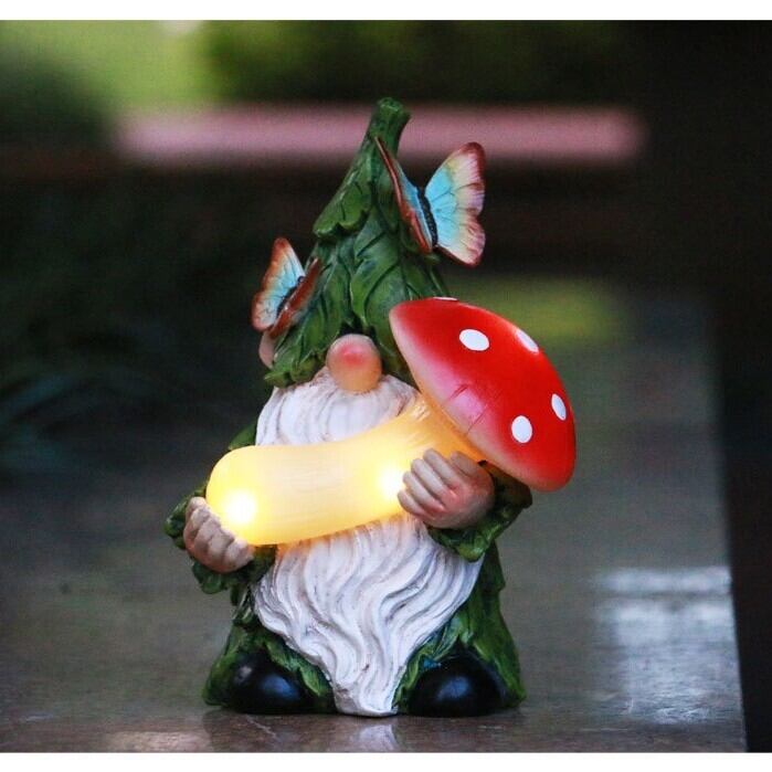ガーデンライト ノーム きのこ キノコ ドワーフ ソーラー 樹脂 オーナメント 置物 かわいい ガーデニング 雑貨 ガーデン雑貨 ガーデンインテリア ガーデン インテリア 庭の装飾 お洒落 おしゃれ 8-14