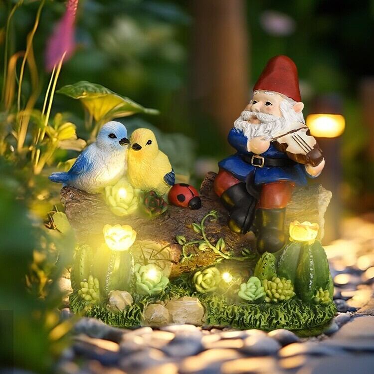 ガーデンライト ノーム 鳥 小鳥 ドワーフ ソーラー 樹脂 オーナメント 置物 かわいい ガーデニング 雑貨 ガーデン雑貨 ガーデンインテリア ガーデン インテリア 庭の装飾 お洒落 おしゃれ 8-14