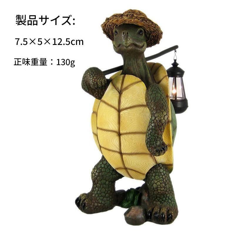 樹脂素材を使用したこのオブジェは、軽量で耐久性があり、色あせしにくいのが特長です。立ち上がっている姿勢は、観る人に穏やかな印象を与え、どこか懐かしい雰囲気を漂わせています。リアルな彫刻によって、甲羅のディテールや足の形状が巧みに再現されており、まるで本物のカメがそこにいるかのようです。
