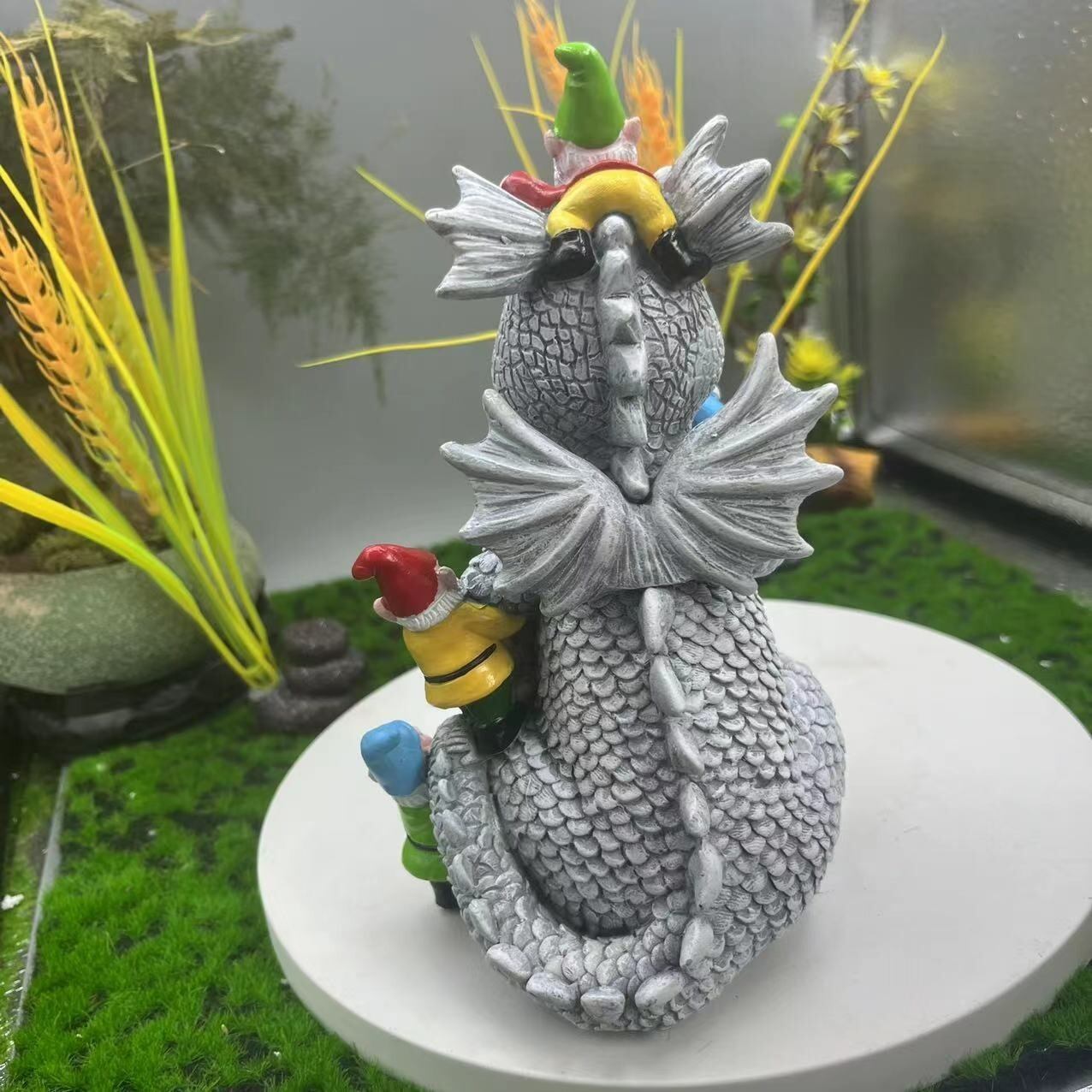 ガーデンオブジェ 恐竜とドワーフ 樹脂 庭 置物 ガーデンオーナメント かわいい ファンタジー ガーデニング 雑貨 ガーデン雑貨 ガーデンインテリア ガーデン インテリア 庭の装飾 お洒落 おしゃれ 8-14