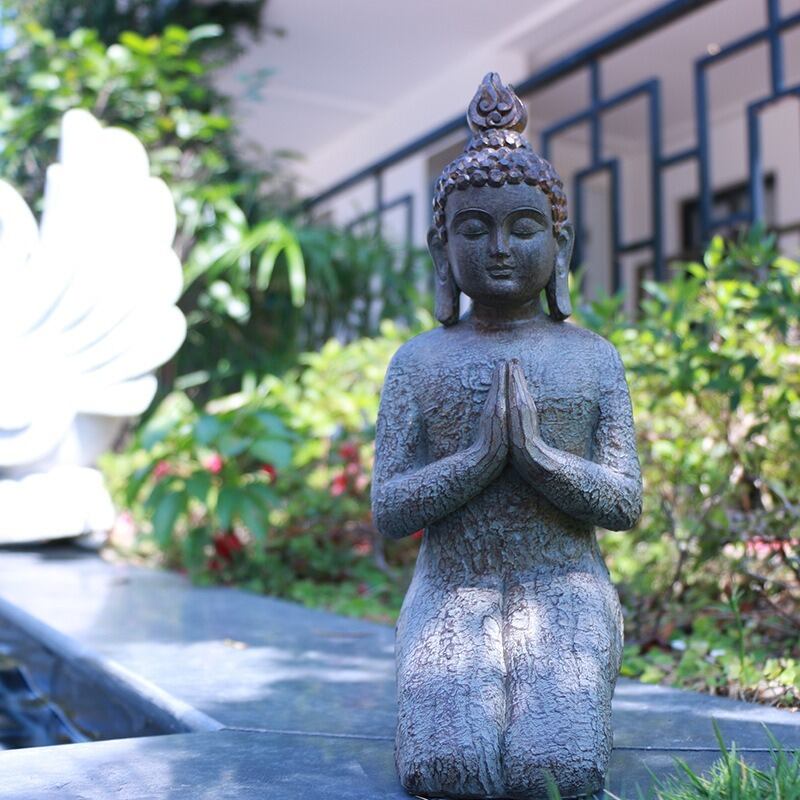 このガーデンオブジェは、癒しや精神性を象徴する存在として、庭やベランダに設置するのに最適です。特に庭に置くことで、自然の中にひっそりと佇む仏像が、風に揺れる草花や空の青さと調和し、訪れる人の心に深い安らぎをもたらします。