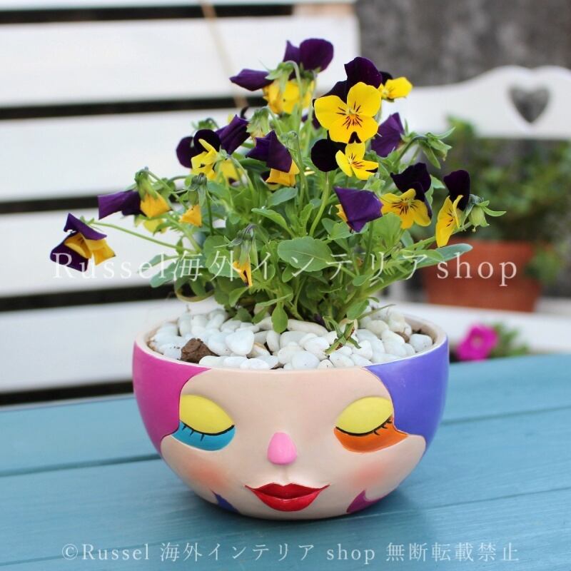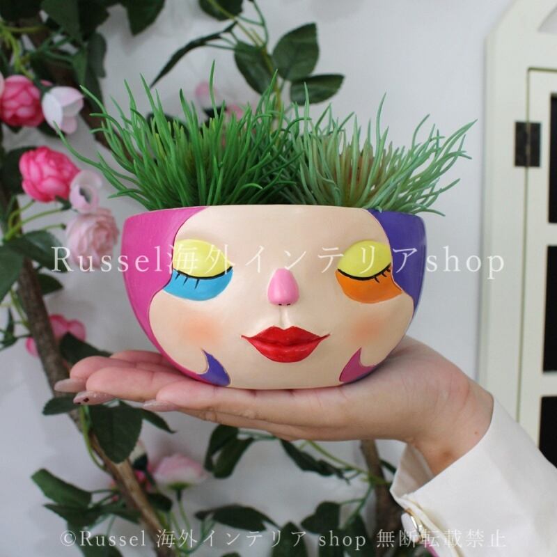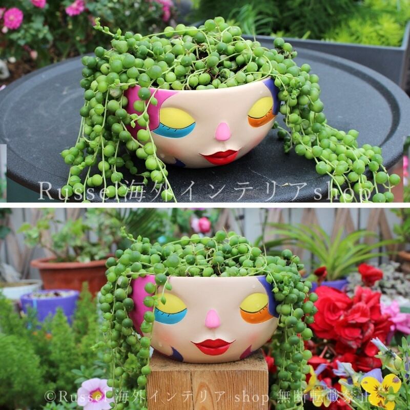 植木鉢 プランター カラフル 人の顔 フェイス ユニーク 面白い 樹脂 かわいい ガーデニング 雑貨 ガーデン雑貨 ガーデンインテリア ガーデン インテリア 庭の装飾 お洒落 おしゃれ 8-14