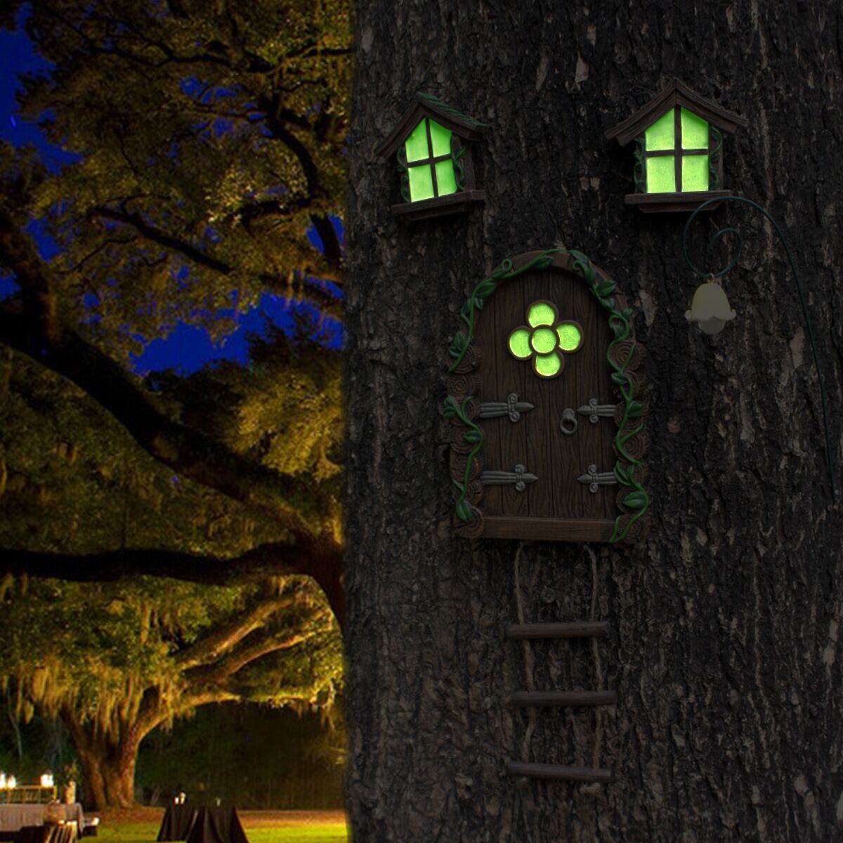 この小人の家風のデザインは、木に取り付けることができ、お子様やご友人との特別な瞬間を彩ります。静かな庭の中に小さなファンタジーの世界が広がることで、リラックスした時間を楽しんでいただけることでしょう。また、耐候性に優れた樹脂素材を使用しているため、屋外でも安心してご使用いただけます。