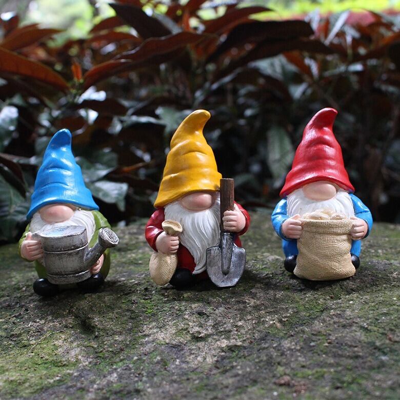 ガーデンオブジェ 3人 ドワーフ 庭 かわいい 樹脂 赤 青 黄色 妖精 置物 ガーデンオーナメント ガーデニング 雑貨 ガーデン雑貨 ガーデンインテリア ガーデン インテリア 庭の装飾 お洒落 おしゃれ 8-14
