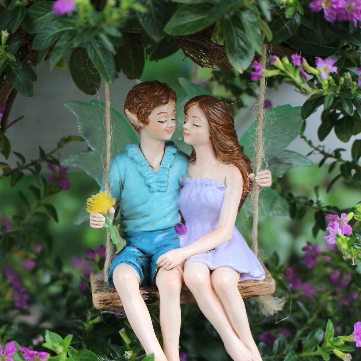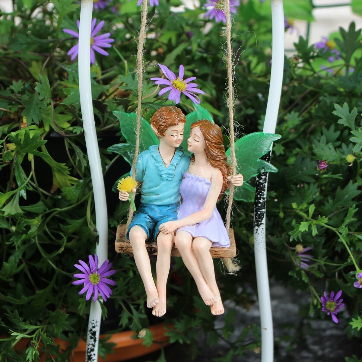 ガーデンオブジェ エルフ カップル 蓄光 ブランコ 夫婦 かわいい 妖精 フェアリー 吊るせる ガーデンオーナメント ガーデニング 雑貨 ガーデン雑貨 ガーデンインテリア ガーデン インテリア 庭の装飾 お洒落 おしゃれ 8-14
