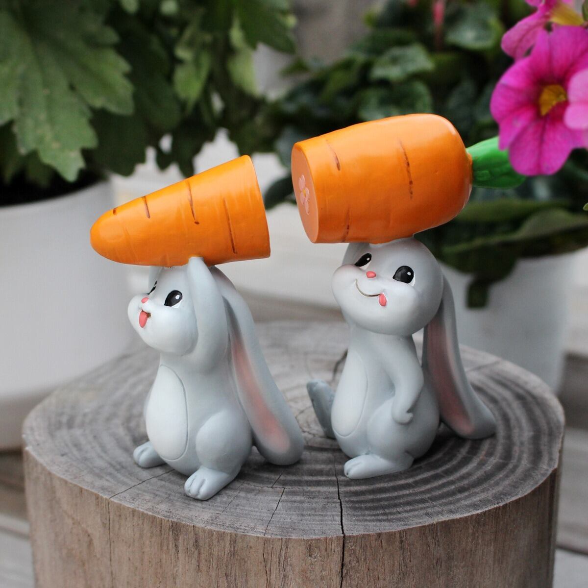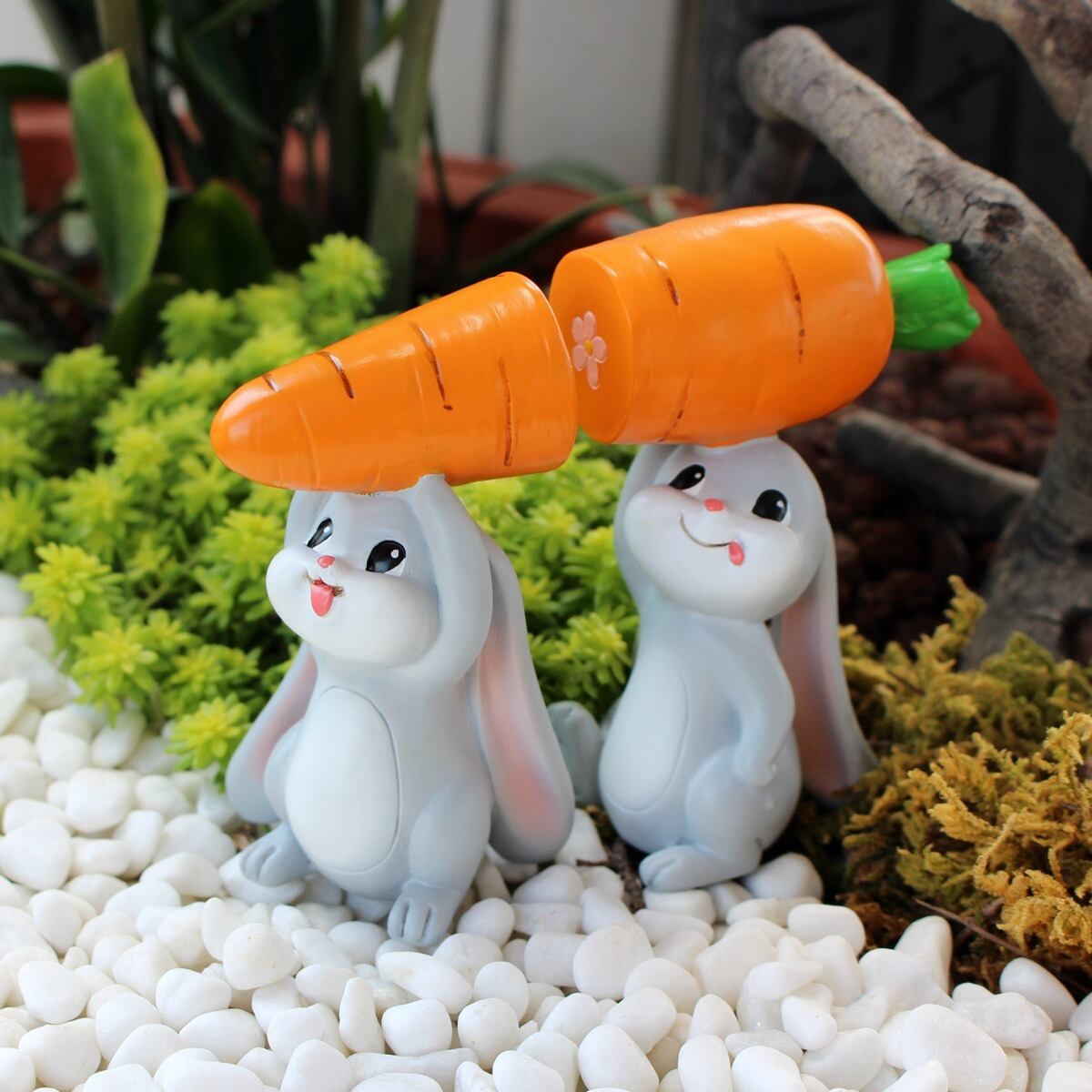 このオブジェは、耐久性に優れた樹脂素材を使用しており、屋外でも安心して利用できるのが魅力です。色あせや割れの心配がなく、長期間その可愛さを保ちながら、あなたのガーデニングライフをさらに彩るアイテムです。ウサギたちの愛らしい姿が、見る人々の心を癒し、楽しいひとときを提供してくれること間違いなしです。