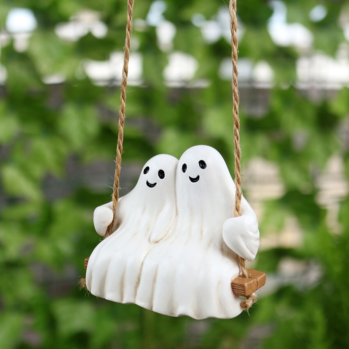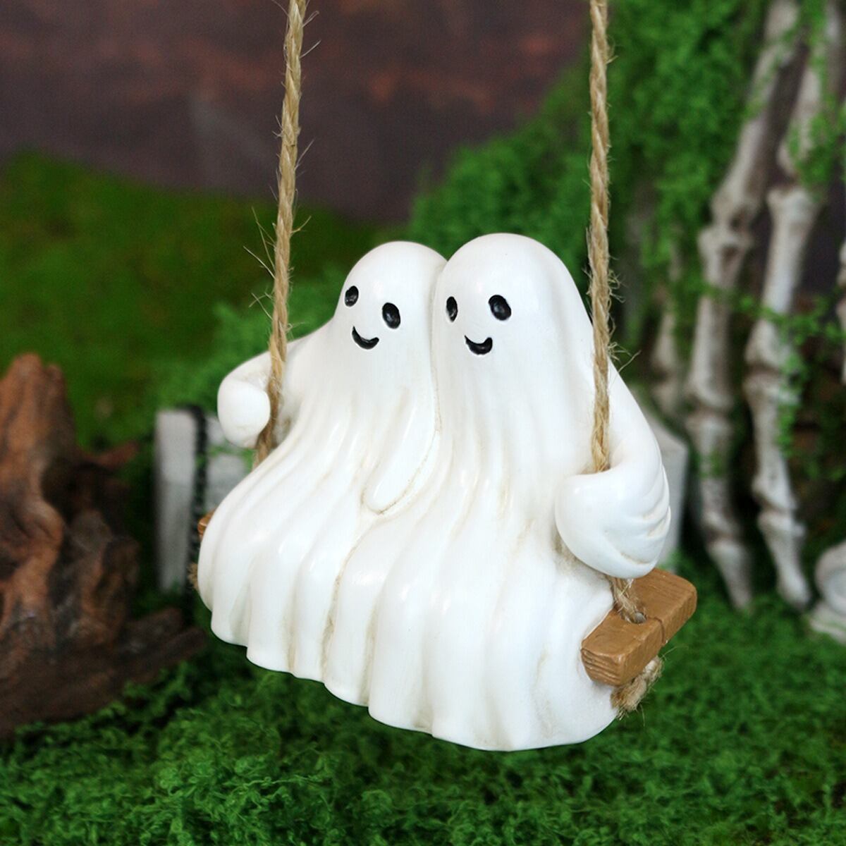ガーデンオーナメント ブランコ オバケ カップル かわいい 樹脂 庭 ゴースト 夫婦 ハロウィン ガーデンオブジェ ガーデニング 雑貨 ガーデン雑貨 ガーデンインテリア ガーデン インテリア 庭の装飾 お洒落 おしゃれ 8-14
