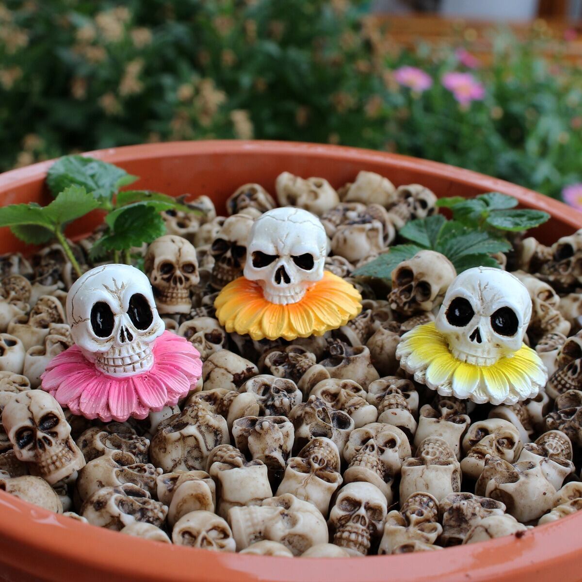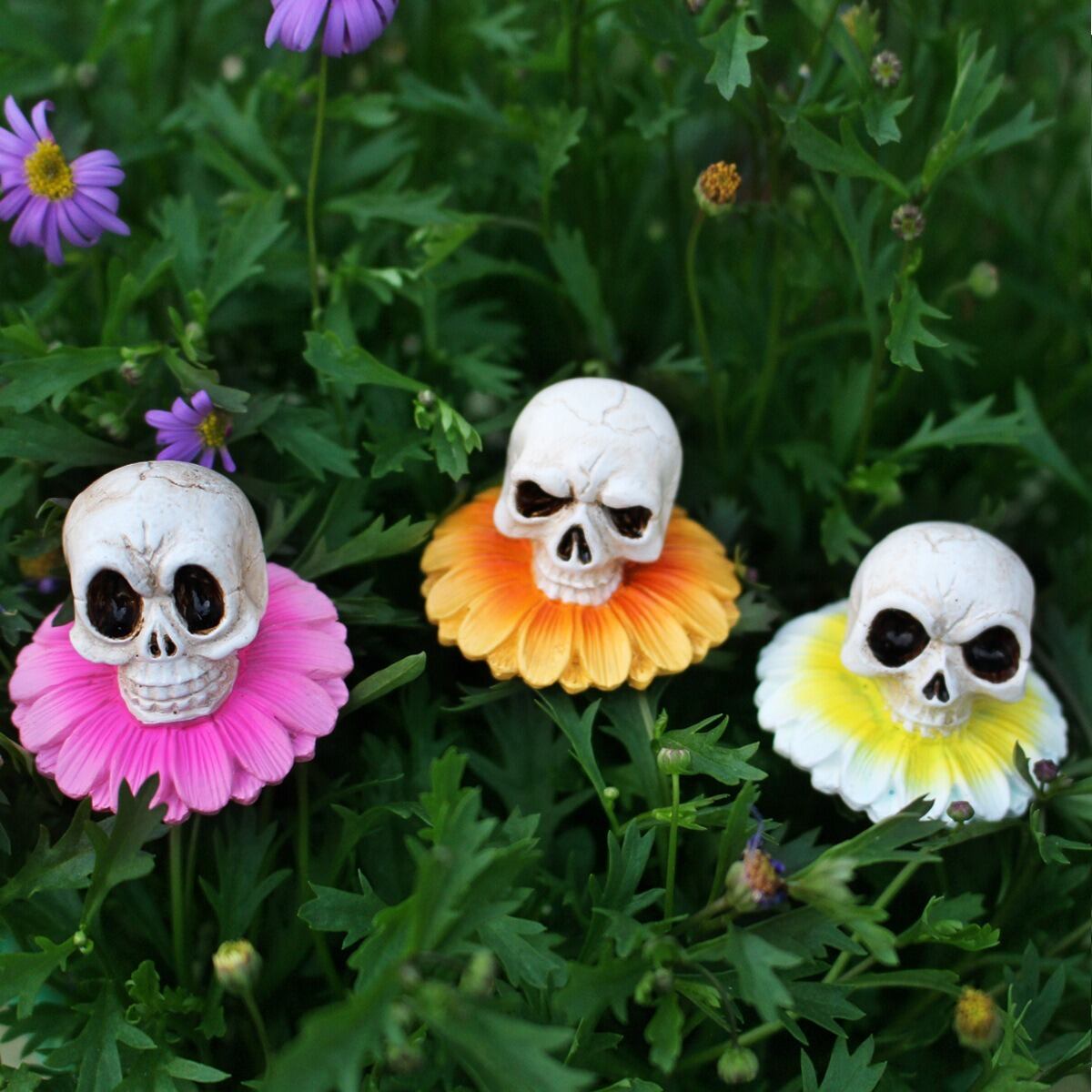 ガーデンオブジェ 骸骨 3個セット お花 かわいい 樹脂 フラワー スカル 可愛い ハロウィン ガーデンオーナメント ガーデニング 雑貨 ガーデン雑貨 ガーデンインテリア ガーデン インテリア 庭の装飾 お洒落 おしゃれ 8-14