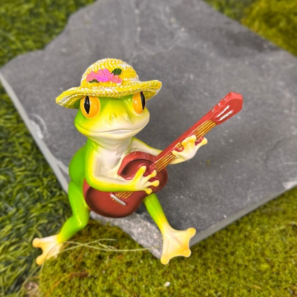 ガーデンオブジェ かえる ギター カエル 樹脂 蛙 かわいい 帽子 ガーデンオーナメント 置物 ガーデニング 雑貨 ガーデン雑貨 ガーデンインテリア ガーデン インテリア 庭の装飾 お洒落 おしゃれ 8-14