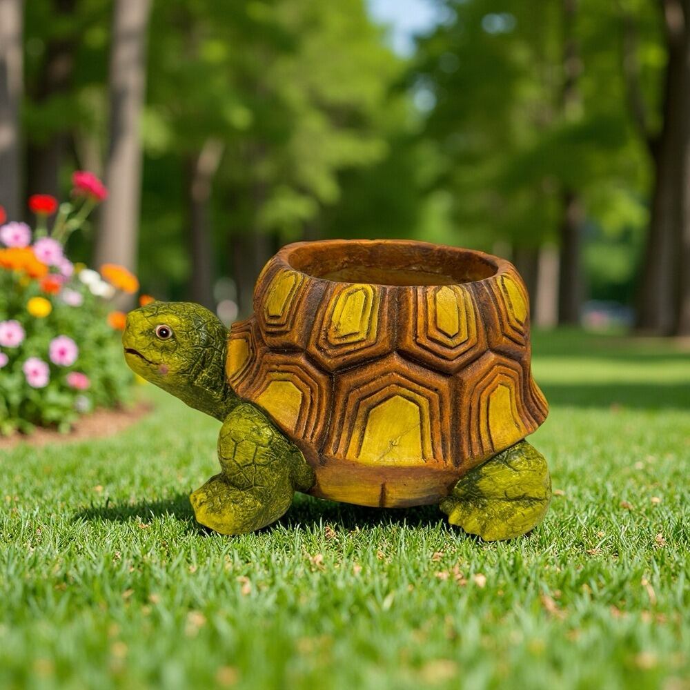 このプランターは、耐久性に優れた樹脂素材を使用しており、屋外でも安心してご利用いただけます。色あせや割れの心配が少なく、長期間その魅力を保ちながら、あなたのガーデニングライフを華やかに彩ります。カメのユニークな形状が、見る人々の心をつかみ、癒しのひとときを提供します。