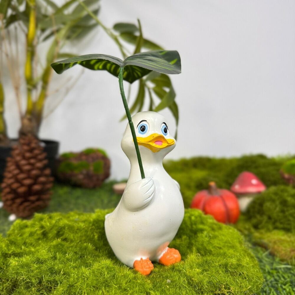 このオブジェは、耐久性に優れた樹脂素材を使用しており、屋外でも安心してご利用いただけます。色あせや割れの心配も少なく、長期間その魅力を保ちながら、あなたのガーデニングライフを鮮やかに彩ります。葉っぱを持ったアヒルの愛らしい仕草が、見る人々の心をつかみ、癒しのひとときを提供します。