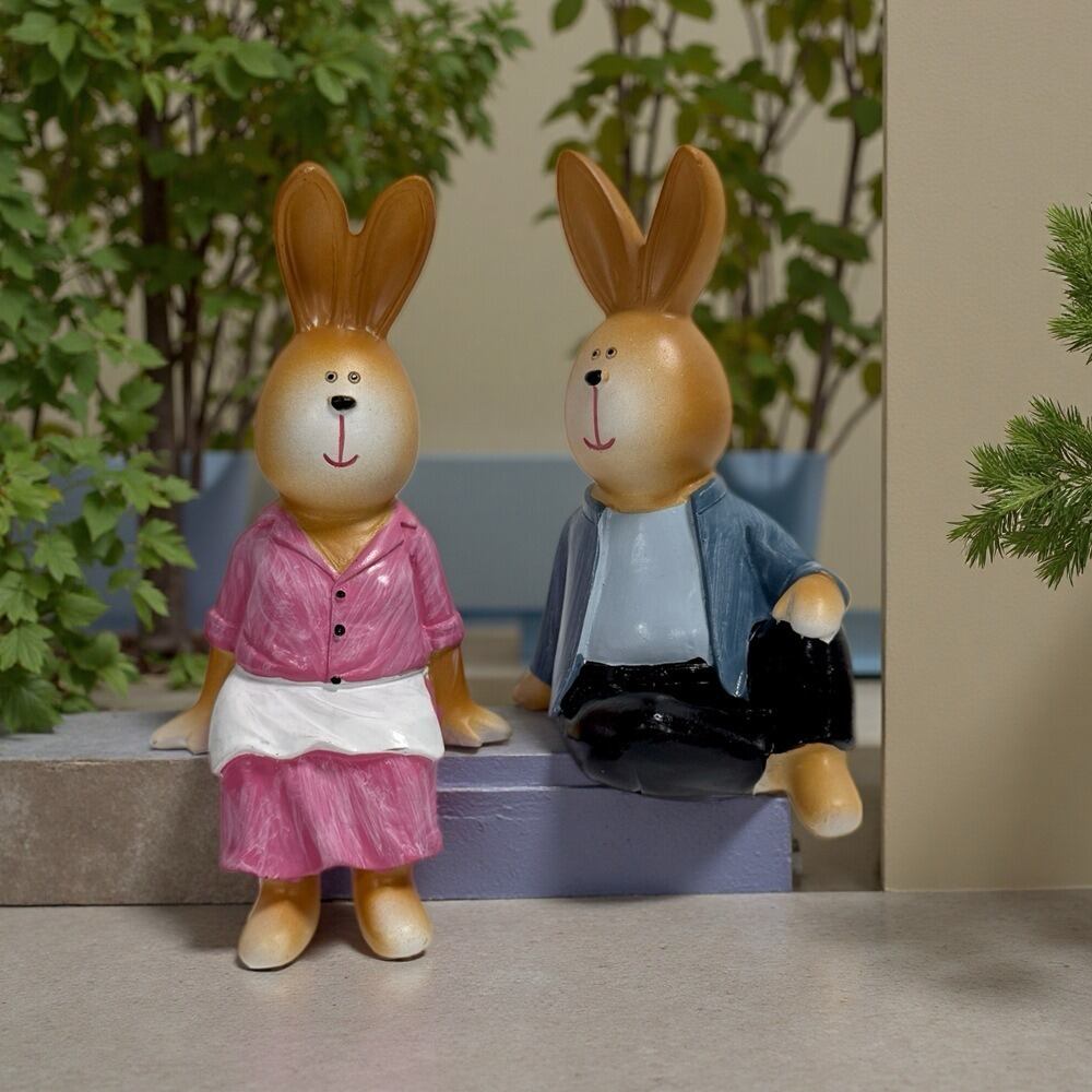 ガーデンオブジェ うさぎ カップル 樹脂 ラビット かわいい 夫婦 置物 ガーデンオーナメント 2個セット ガーデンオーナメント ガーデニング 雑貨 ガーデン雑貨 ガーデンインテリア ガーデン インテリア 庭の装飾 お洒落 おしゃれ 8--14