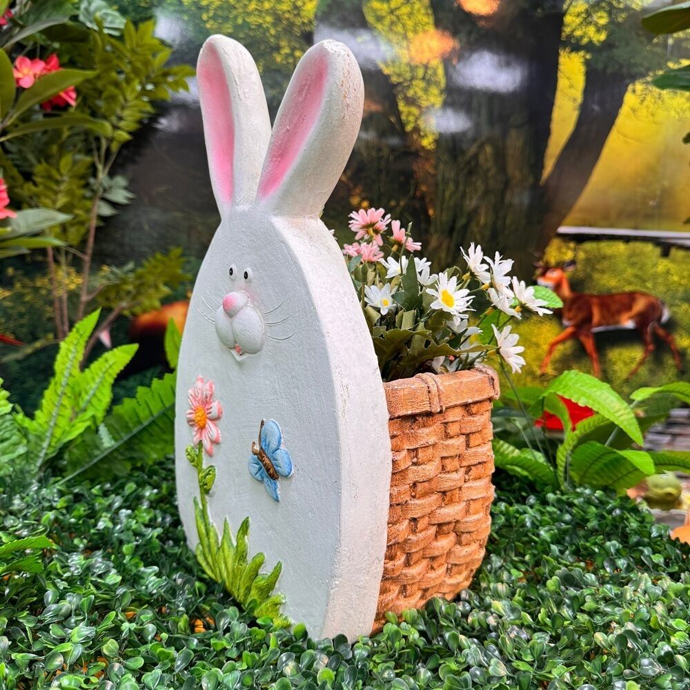 プランター ウサギ かわいい うさぎ 樹脂 庭 鉢植え 植木鉢 アニマル ラビット ホワイト 白 バスケット風 ガーデニング 雑貨 ガーデン雑貨 ガーデンインテリア ガーデン インテリア 庭の装飾 お洒落 おしゃれ 8-14