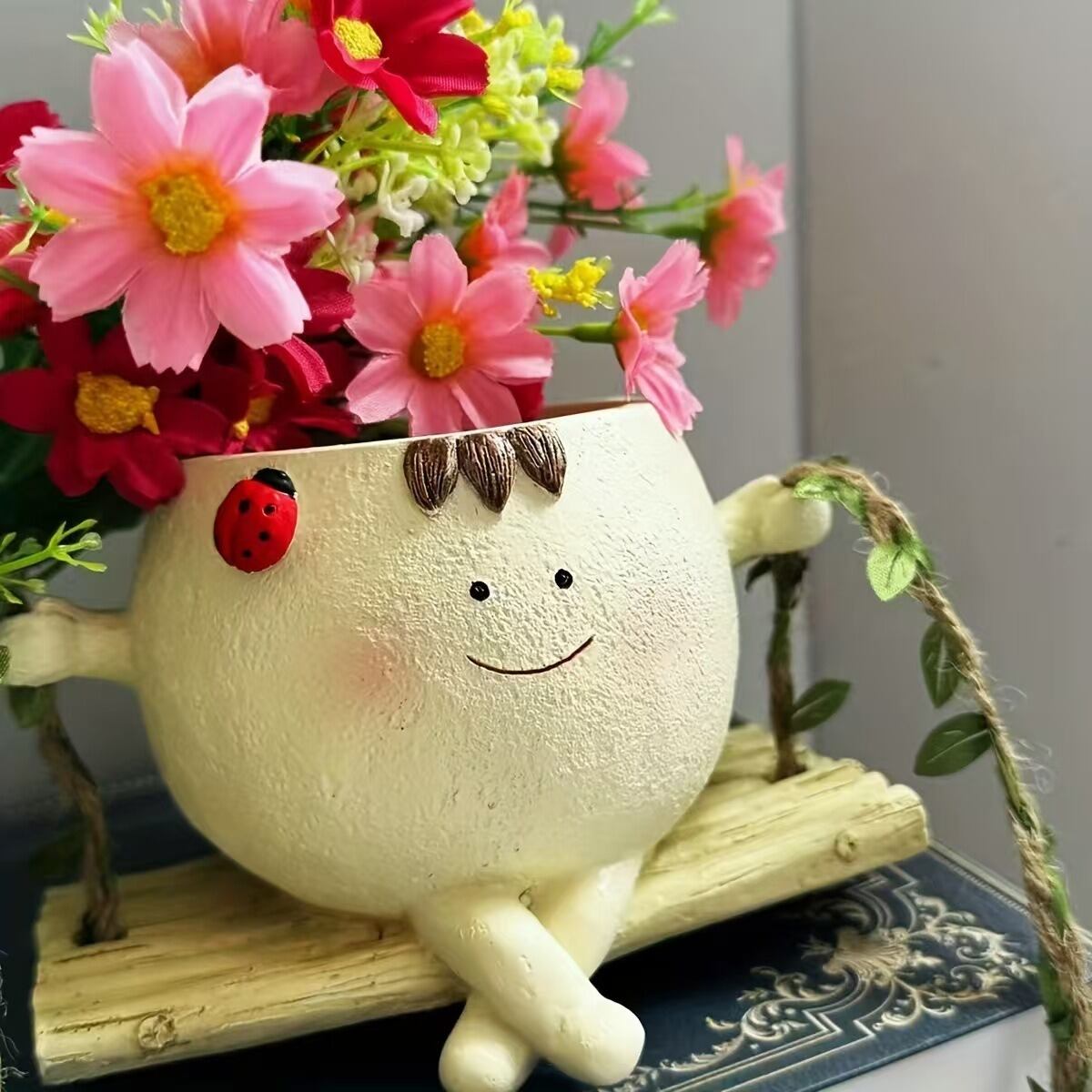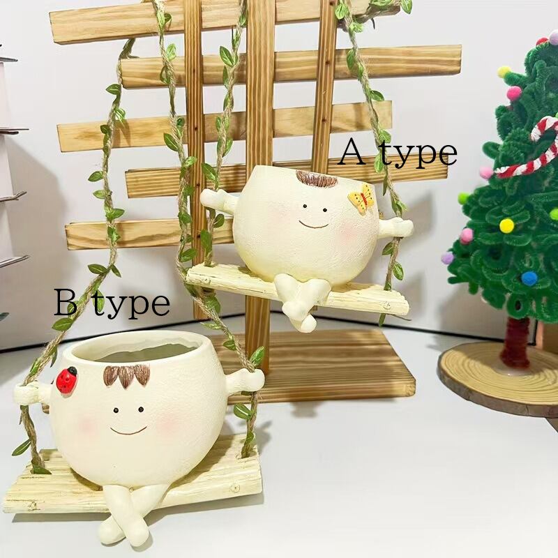 プランター かわいい 顔つき てんとう虫 蝶 ユニーク 庭 鉢植え 植木鉢 ブランコ 吊るせる ガーデンオーナメント ガーデニング 雑貨 ガーデン雑貨 ガーデンインテリア ガーデン インテリア 庭の装飾 お洒落 おしゃれ 8-14