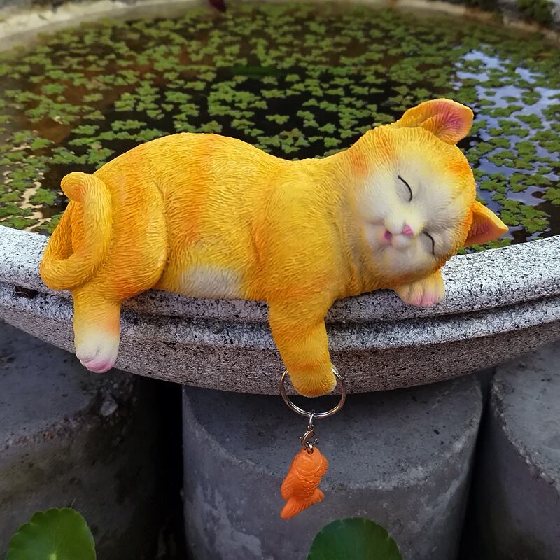ガーデンオブジェ 猫 ねこ アニマル 魚 眠っている ネコ 樹脂 庭 置物 ガーデンオーナメント ガーデニング 雑貨 ガーデン雑貨 ガーデンインテリア ガーデン インテリア 庭の装飾 お洒落 おしゃれ 8-14