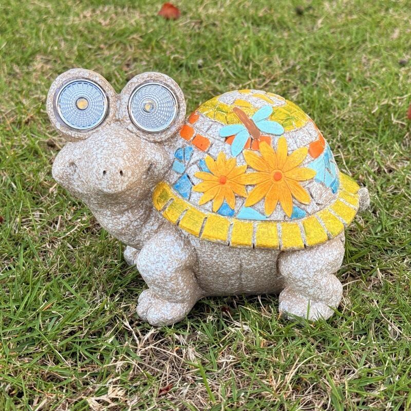 ガーデンライト かめ ソーラー 樹脂 庭 イエロー 黄色 タートル かわいい 太陽光 ガーデニング 雑貨 ガーデン雑貨 ガーデンインテリア ガーデン インテリア 庭の装飾 お洒落 おしゃれ 8-14