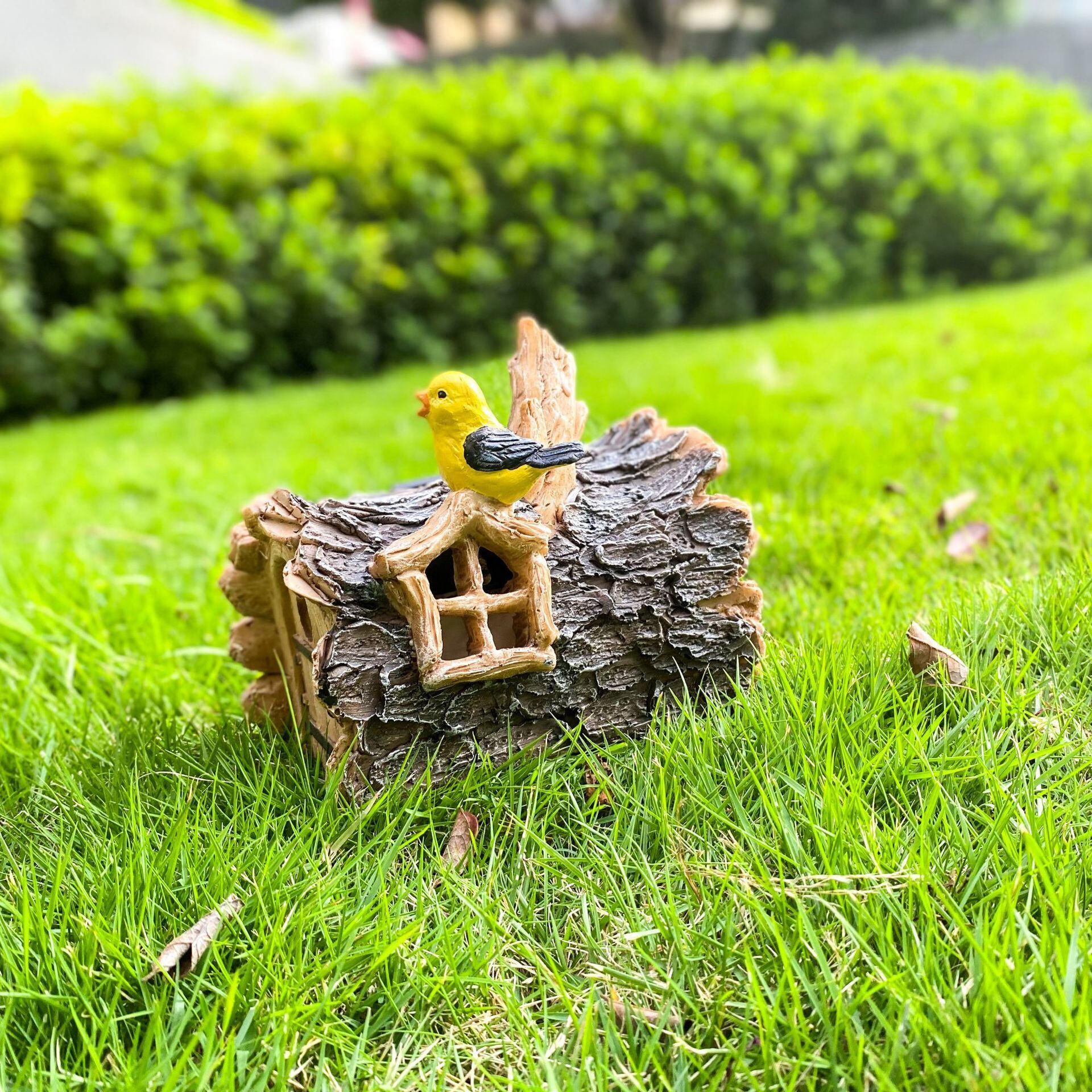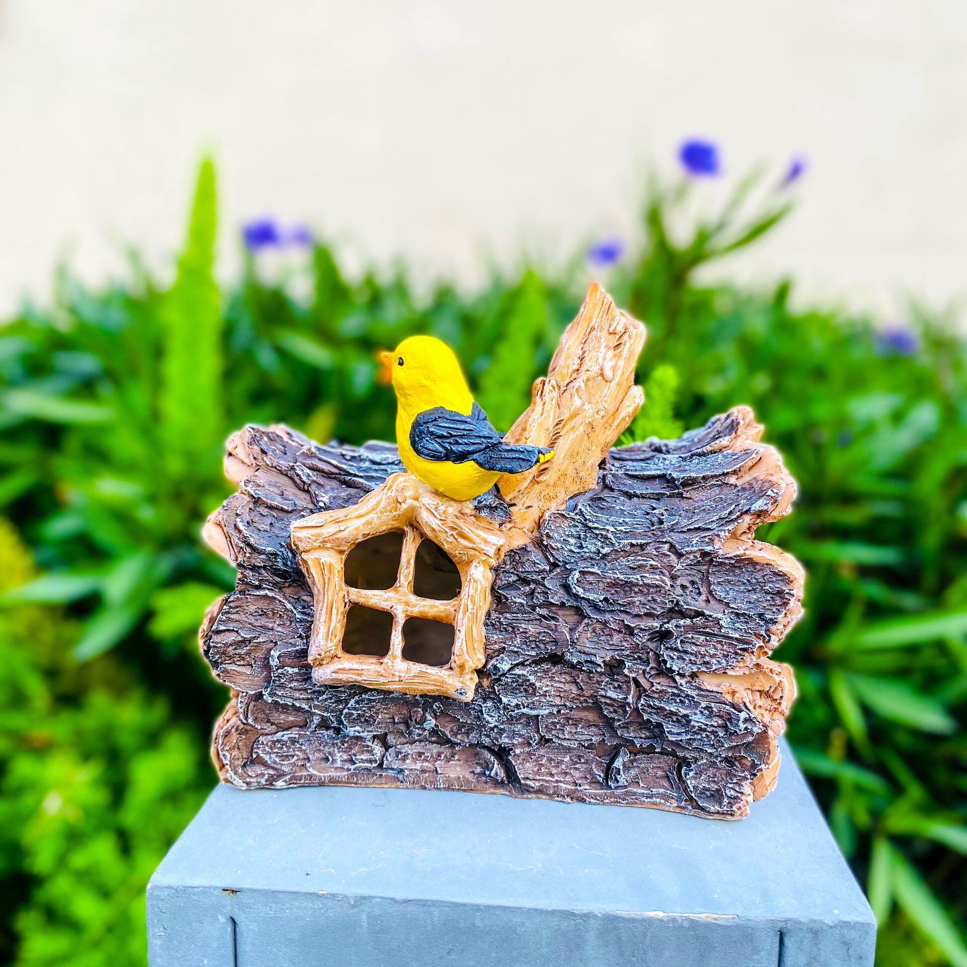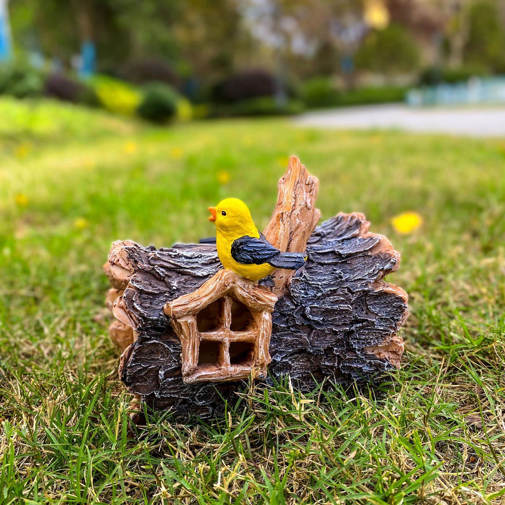 ガーデンライト 木の家 鳥 ソーラー 樹脂 黄色 イエロー ミニチュア ハウス 妖精 太陽光 ガーデニング 雑貨 ガーデン雑貨 ガーデンインテリア ガーデン インテリア 庭の装飾 お洒落 おしゃれ 8-14