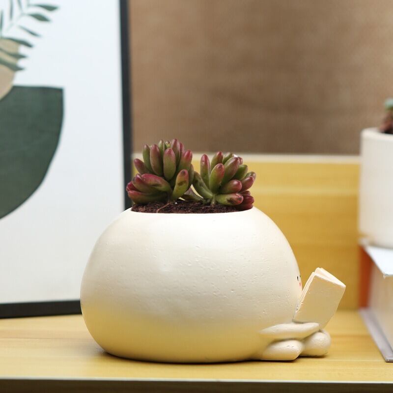 プランター 丸い 可愛い顔 樹脂 鉢植え 植木鉢 かわいい 読書 ガーデニング 雑貨 ガーデン雑貨 ガーデンインテリア ガーデン インテリア 庭の装飾 お洒落 おしゃれ 8-14