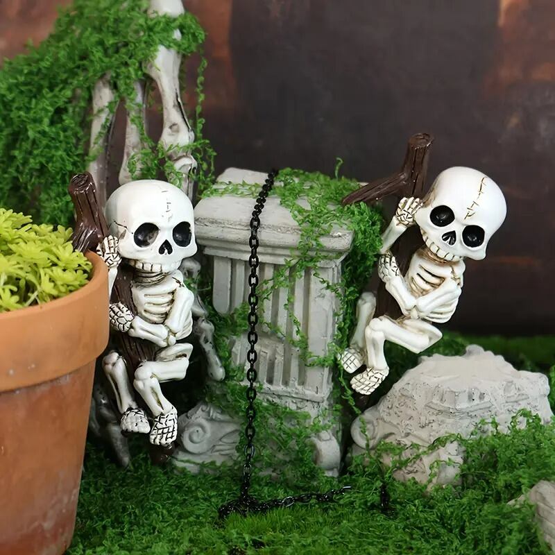 ガーデンオブジェ ガイコツ スカル 骸骨 ハロウィン 装飾 引っ掛けられる 2個セット 樹脂 庭 ガーデンオーナメント ガーデニング 雑貨 ガーデン雑貨 ガーデンインテリア ガーデン インテリア 庭の装飾 お洒落 おしゃれ 4-7