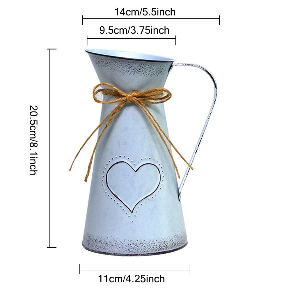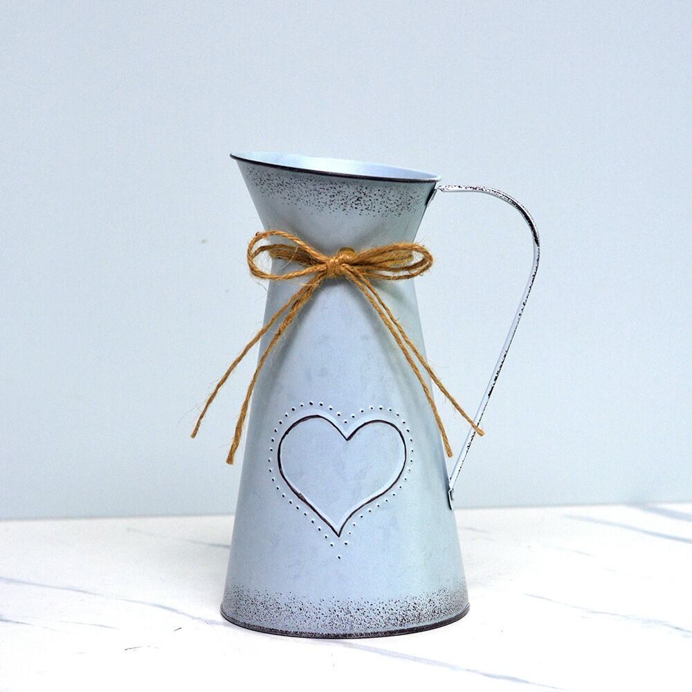 花瓶 フレンチ ヴィンテージ調 ミルクジャグ 金属 ブルー 青 ハート 亜鉛メッキ 素朴 ガーデニング 雑貨 ガーデン雑貨 ガーデンインテリア ガーデン インテリア 庭の装飾 お洒落 おしゃれ 8-14