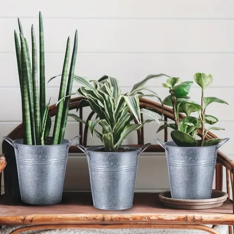 植木鉢 鉢植え 金属 プランター グレー フラワーバケツ レトロ ハンドル付き ガーデニング 雑貨 ガーデン雑貨 ガーデンインテリア ガーデン インテリア 庭の装飾 お洒落 おしゃれ 8-14