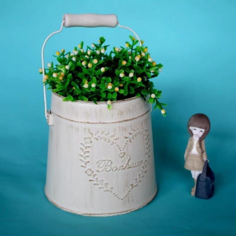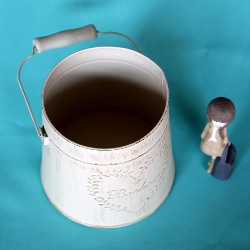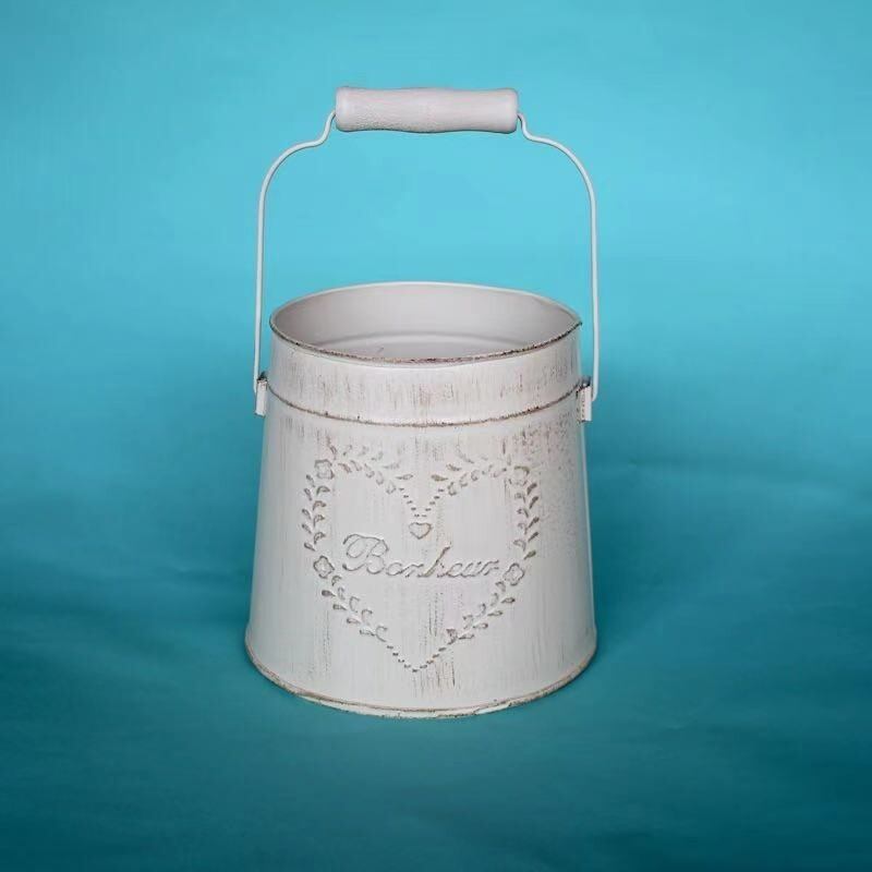 植木鉢 金属 鉢植え プランター ホワイト アメリカン ヴィンテージ調 フラワーバケツ レトロ ハンドル付き ガーデニング 雑貨 ガーデン雑貨 ガーデンインテリア ガーデン インテリア 庭の装飾 お洒落 おしゃれ 8-14