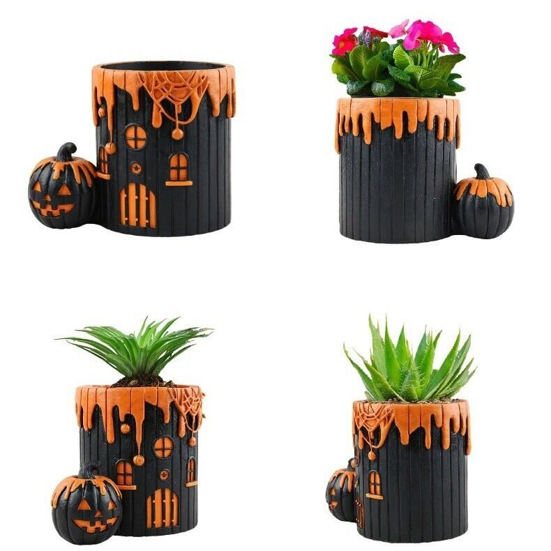 プランター ハロウィン オレンジ ブラック 樹脂 鉢植え 植木鉢 カボチャ パンプキン ガーデニング 雑貨 ガーデン雑貨 ガーデンインテリア ガーデン インテリア 庭の装飾 お洒落 おしゃれ 8-14