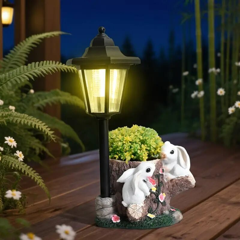 プランター うさぎ 切り株 植木鉢 太陽光 ソーラーライト 樹脂 ラビット アニマル ウサギ 兎 ガーデニング 雑貨 ガーデン雑貨 ガーデンインテリア ガーデン インテリア 庭の装飾 お洒落 おしゃれ 4-7