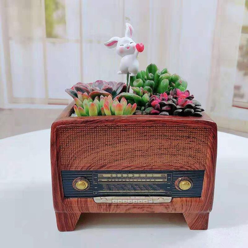 プランター ラジオ風 レトロ 樹脂 おしゃれ 鉢植え 植木鉢 ブラウン ヴィンテージ調 ガーデニング 雑貨 ガーデン雑貨 ガーデンインテリア ガーデン インテリア 庭の装飾 お洒落 おしゃれ 8-14