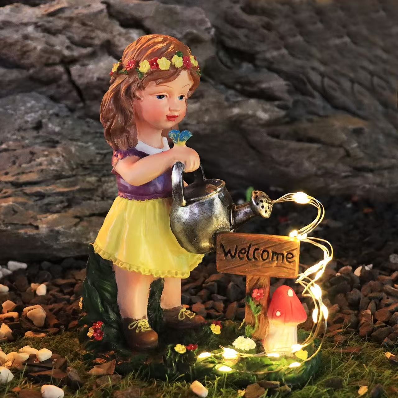 ガーデンライト 少女 女の子 ライト 照明 置物 ガーデンオブジェ 樹脂 かわいい ソーラー ガーデニング 雑貨 ガーデン雑貨 ガーデンインテリア ガーデン インテリア 庭の装飾 お洒落 おしゃれ 8-14