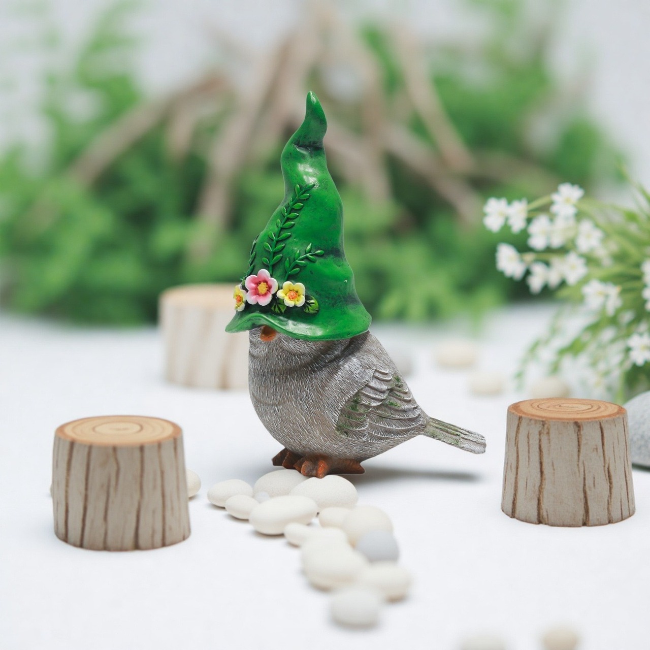 こちらの「ガーデンオブジェ 帽子をかぶった小鳥」は、あなたの庭やバルコニーに愛らしさをプラスする素敵なアイテムです!帽子をかぶった小鳥の楽しいデザインが、訪れる人々に心温まる印象を与え、特別な空間を演出します。樹脂製で軽量なので、持ち運びも簡単、屋外だけでなく室内でもお使いいただけます。