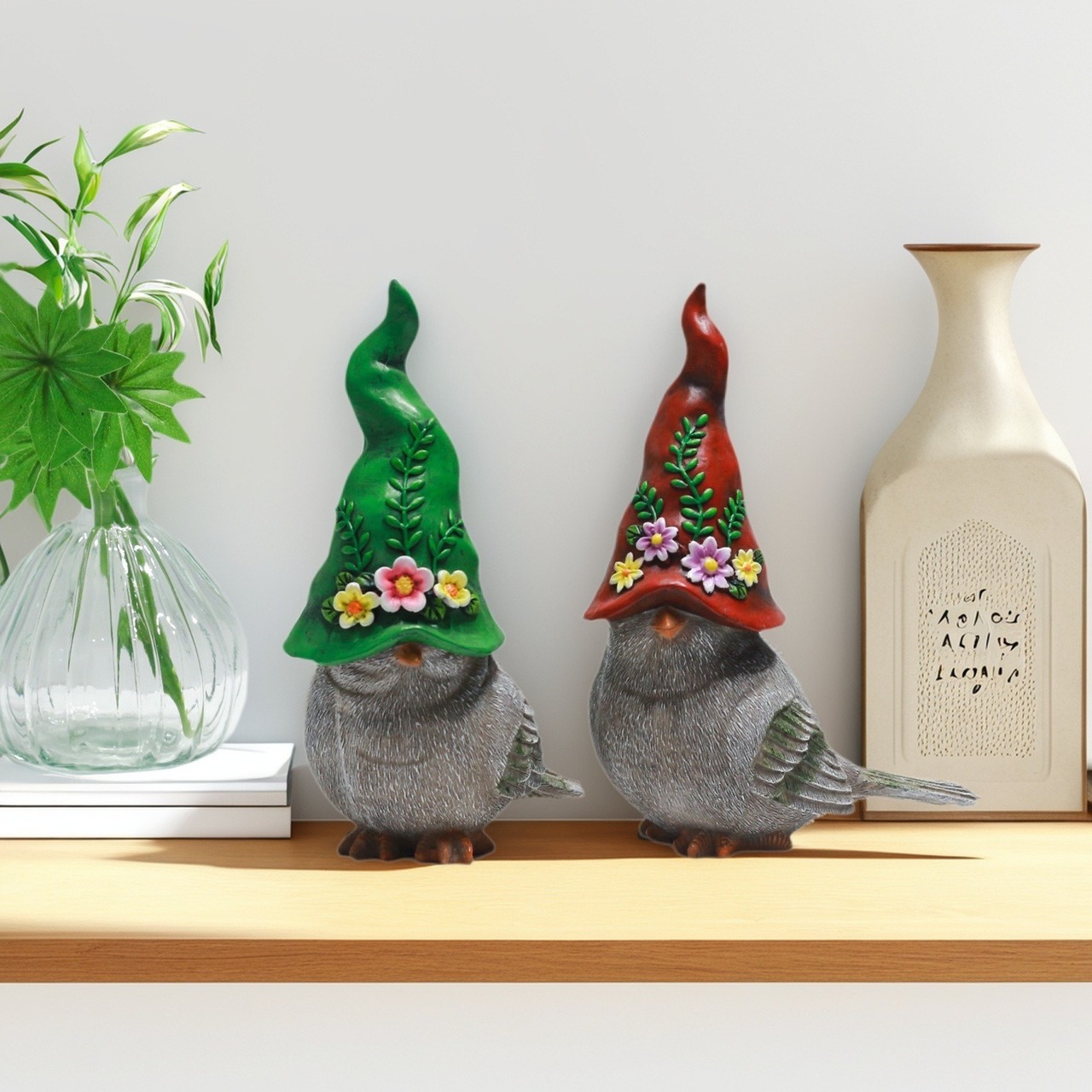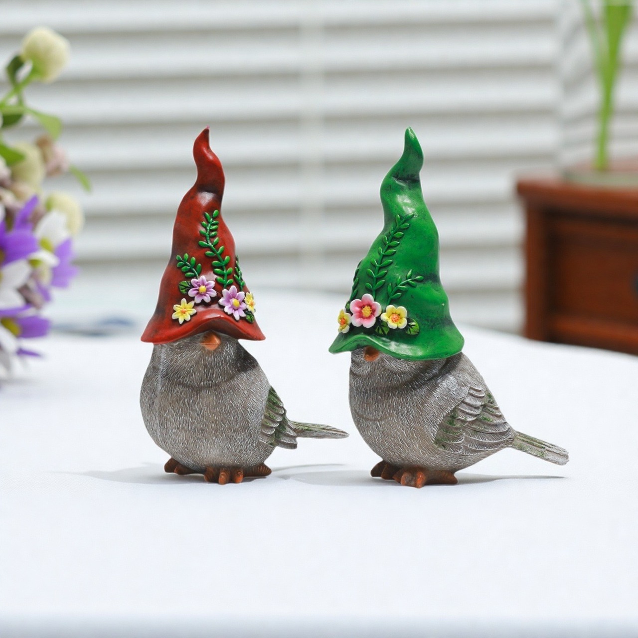 ガーデンオブジェ 小鳥 2個セット 樹脂 帽子 かわいい アニマル 鳥 赤 緑 ガーデンオーナメント 置物 ガーデンオーナメント ガーデニング 雑貨 ガーデン雑貨 ガーデンインテリア ガーデン インテリア 庭の装飾 お洒落 おしゃれ 8-14