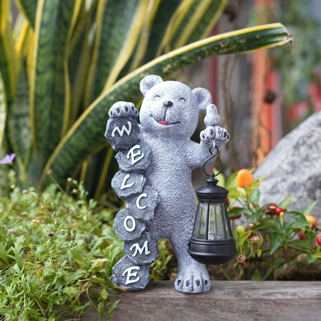 ガーデンライト くま 樹脂 ソーラー ガーデンオブジェ 置物 太陽光 ウェルカムサイン 玄関 クマ かわいい ガーデンオーナメント ガーデニング 雑貨 ガーデン雑貨 ガーデンインテリア ガーデン インテリア 庭の装飾 お洒落 おしゃれ 8-14