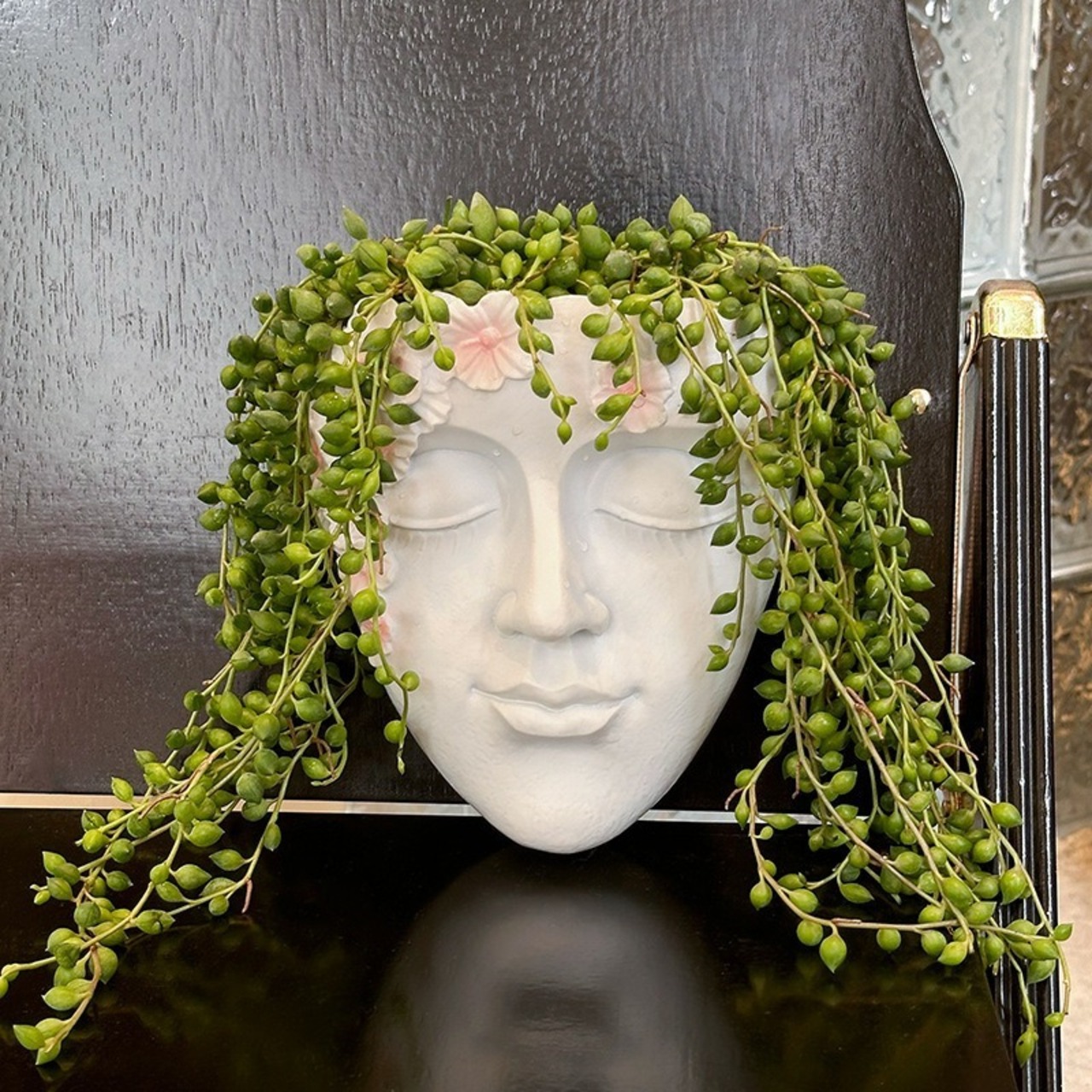 こちらの「プランター 美しい女性の顔 」は、あなたの庭やインテリアに洗練された美をもたらす素晴らしいアイテムです!エレガントな女性の顔をデザインしたプランターが、訪れる人々に華やかな雰囲気を与え、特別な空間を演出します。樹脂製のため、軽量で耐久性があり、どこにでも手軽にお使いいただけます。