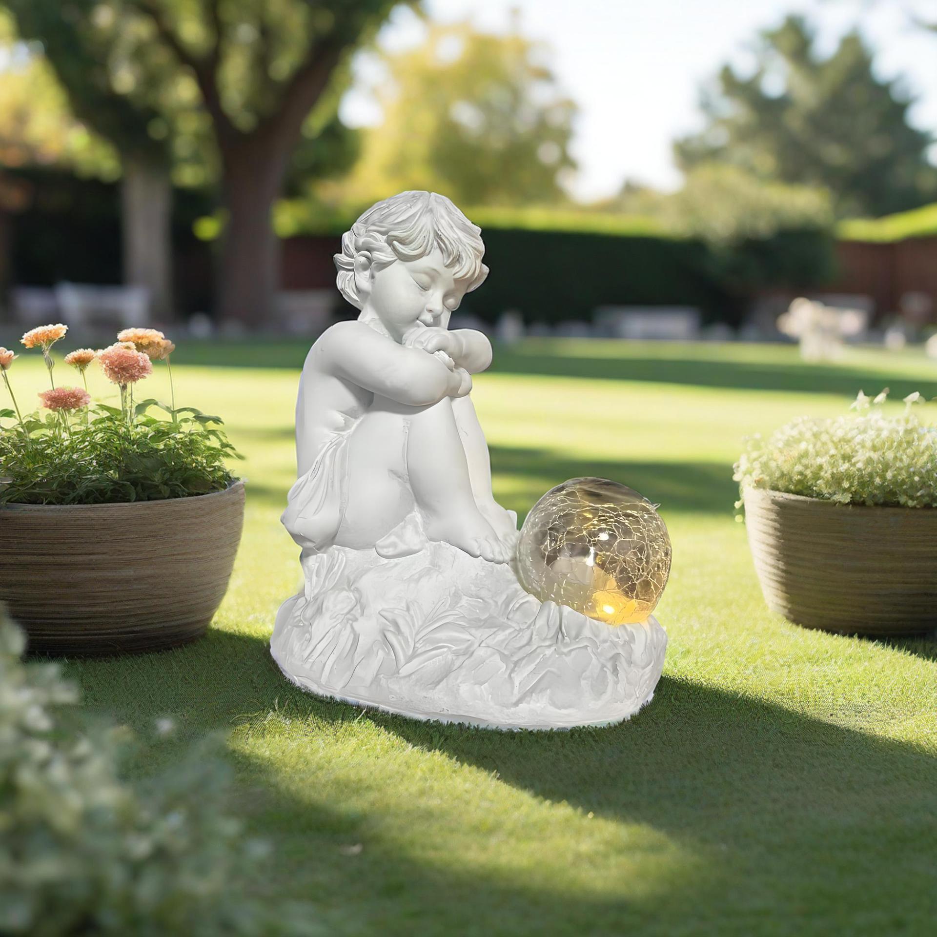 ガーデンライト ソーラー 天使 樹脂 ホワイト 置物 太陽光 エレガント ガーデンオブジェ ガーデンオーナメント ガーデニング 雑貨 ガーデン雑貨 ガーデンインテリア ガーデン インテリア 庭の装飾 お洒落 おしゃれ 8-14