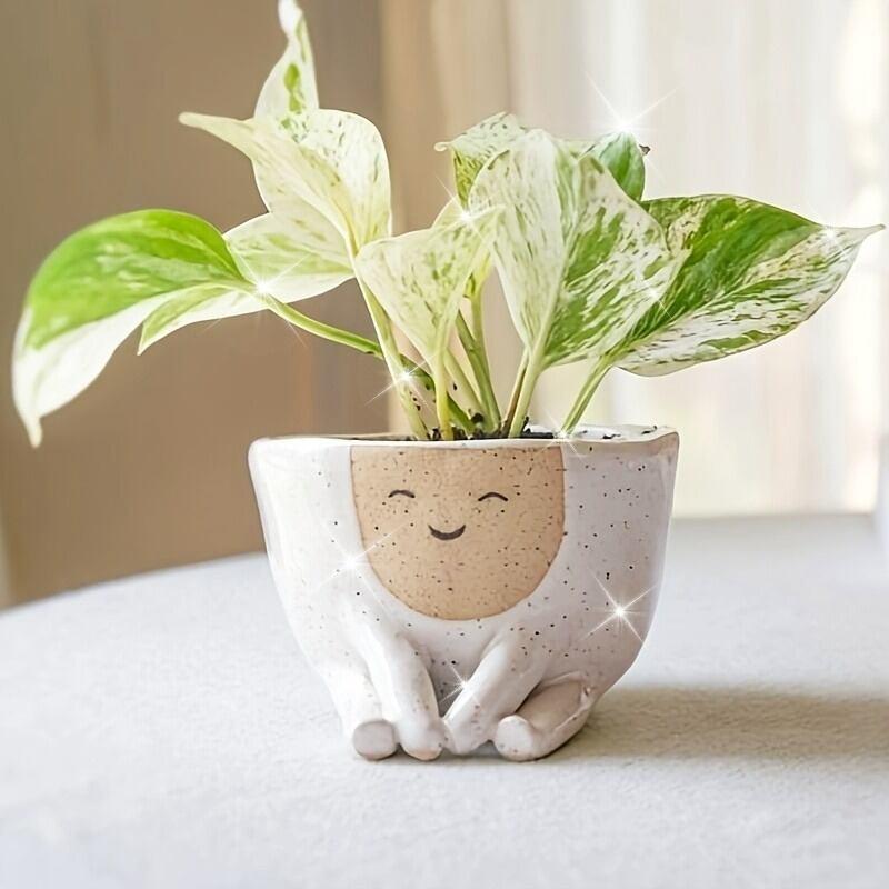 プランター かわいい 顔付き 樹脂 鉢植え 植木鉢 癒し 寄せ植え 多肉植物 ガーデンオブジェ ガーデニング 雑貨 ガーデン雑貨 ガーデンインテリア ガーデン インテリア 庭の装飾 お洒落 おしゃれ 4-7