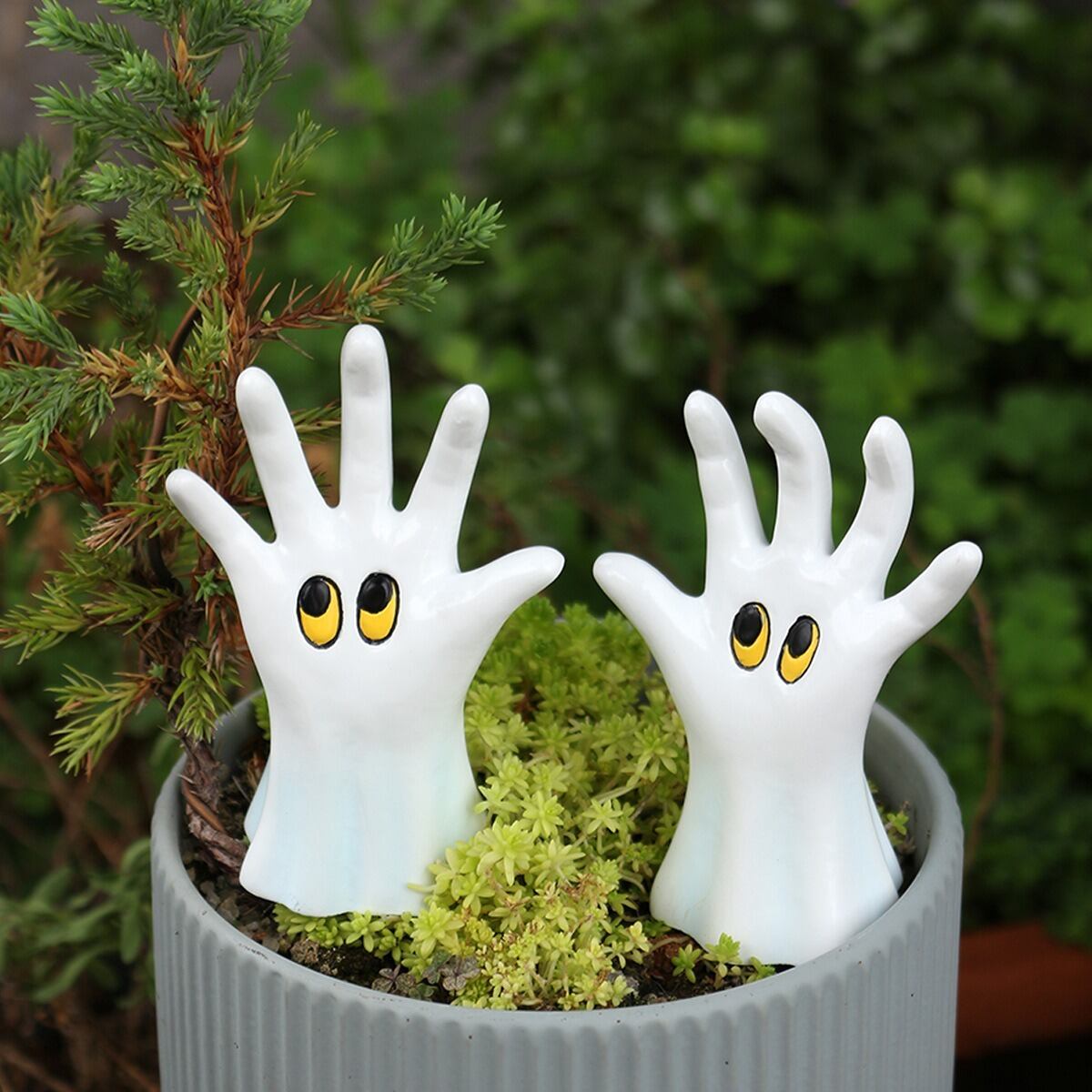 ガーデンオブジェ 手 オバケ 樹脂 2個セット ハンド ゴースト 白 ホワイト 置物 ガーデンオーナメント ガーデニング 雑貨 ガーデン雑貨 ガーデンインテリア ガーデン インテリア 庭の装飾 お洒落 おしゃれ 8-14