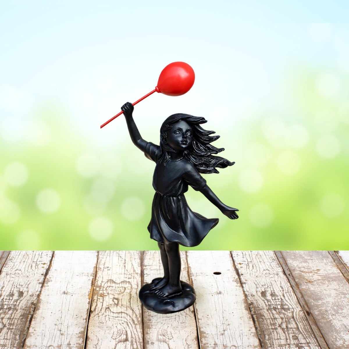 ガーデンオブジェ 女の子 樹脂 風船 少女 ブラック 黒 置物 ガーデンオーナメント かわいい ガーデニング 雑貨 ガーデン雑貨 ガーデンインテリア ガーデン インテリア 庭の装飾 お洒落 おしゃれ 8-14