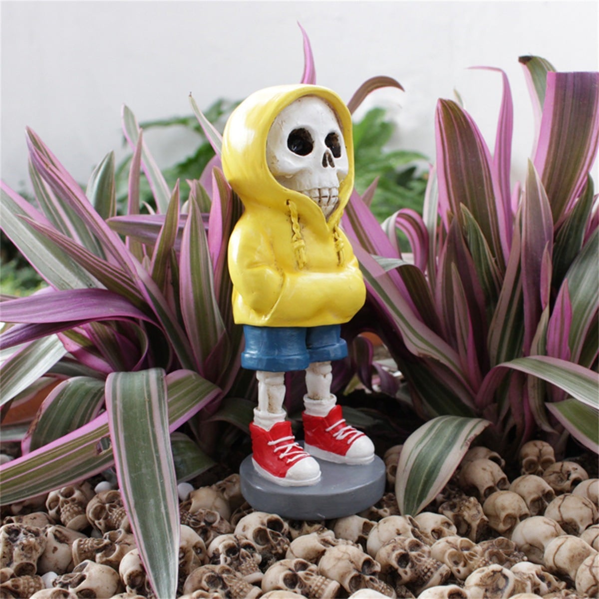 このガーデンオブジェは、さまざまなガーデンスタイルに調和し、「遊び心満載の charm」をあなたのスペースにもたらします。服を着たガイコツのユニークな姿が周囲に楽しげな雰囲気を添え、あなたの特別な場所をさらに魅力的に演出することでしょう。