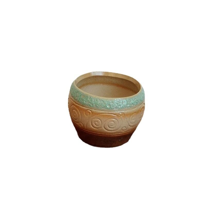 プランター 鉢植え 植木鉢 レトロ調 陶器 ブラウン グリーン 花瓶 ガーデニング 雑貨 ガーデン雑貨 ガーデンインテリア ガーデン インテリア 庭の装飾 お洒落 おしゃれ 8-14