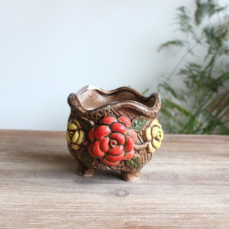 植木鉢 レトロ調 薔薇 ヴィンテージ調 セラミック 手書き風 プランター 鳥 かわいい 陶芸風 鉢植え ガーデニング 雑貨 ガーデン雑貨 ガーデンインテリア ガーデン インテリア 庭の装飾 お洒落 おしゃれ 8-14