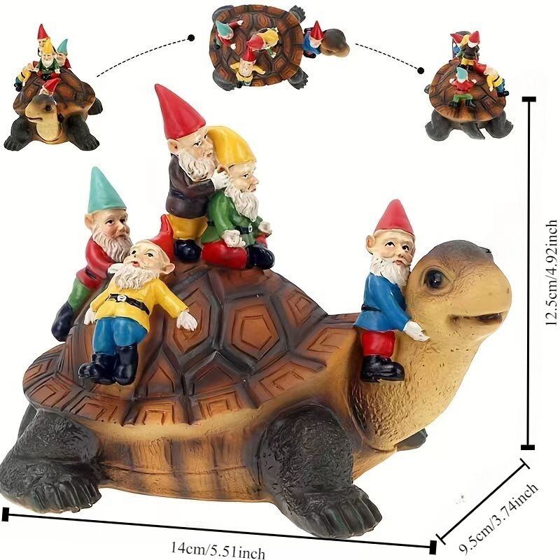 このガーデンオブジェは、特徴的なドワーフたちが亀と共に、あなたのスペースに「遊び心満載の charm」をプラスし、特別なガーデンシーンをさらに愉快に彩ります。観賞用としてだけでなく、ガーデンデコレーションとしても楽しむことが可能です。様々なお庭のスタイルや季節の飾り付けとも素晴らしい相性を持つアイテムです。