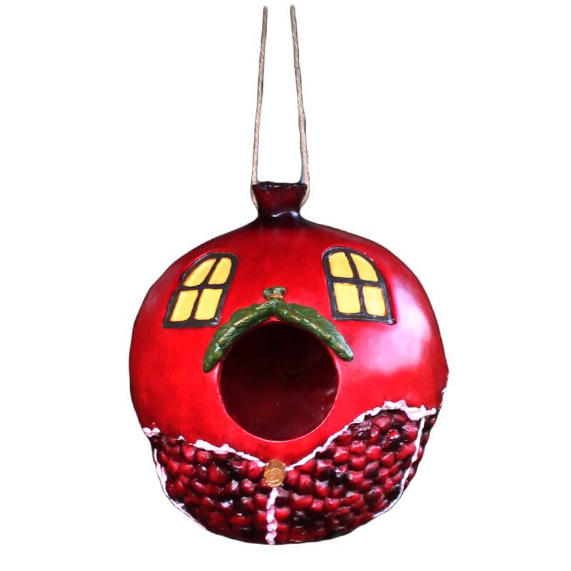 ガーデンオブジェ バードハウス ザクロ 野鳥 樹脂 庭 バードウォッチング ガーデンオーナメント レッド 赤 ガーデニング 雑貨 ガーデン雑貨 ガーデンインテリア ガーデン インテリア 庭の装飾 お洒落 おしゃれ 8-14
