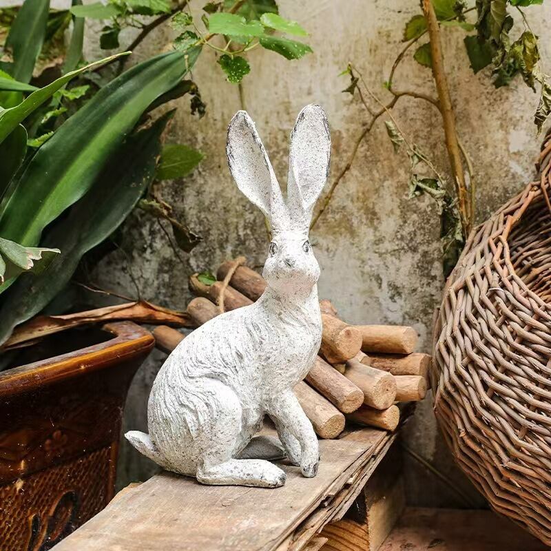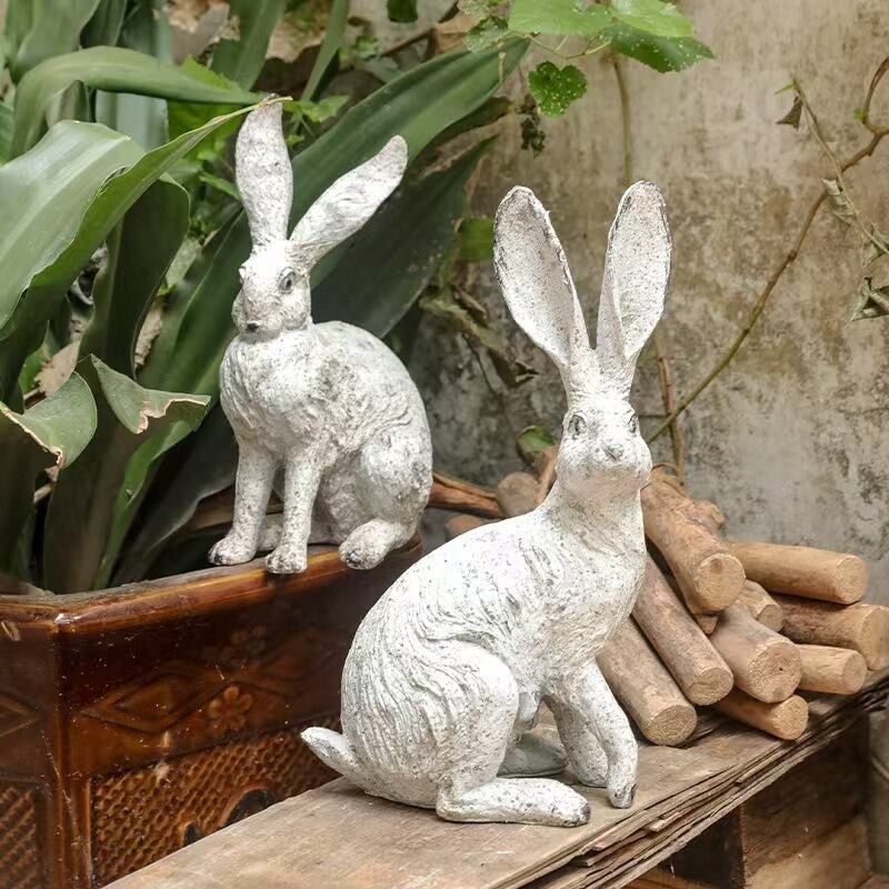 ガーデンオブジェ うさぎ 2匹セット ヴィンテージ調 樹脂 ホワイト 白 置物 アニマル ラビット ガーデニング 雑貨 ガーデン雑貨 ガーデンインテリア ガーデン インテリア 庭の装飾 お洒落 おしゃれ 8-14